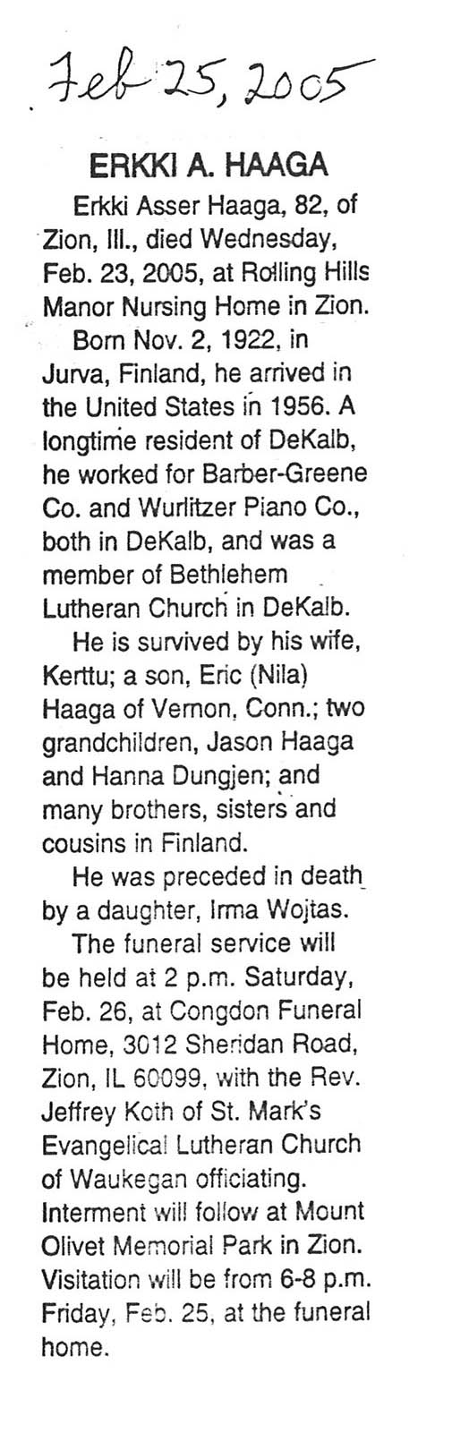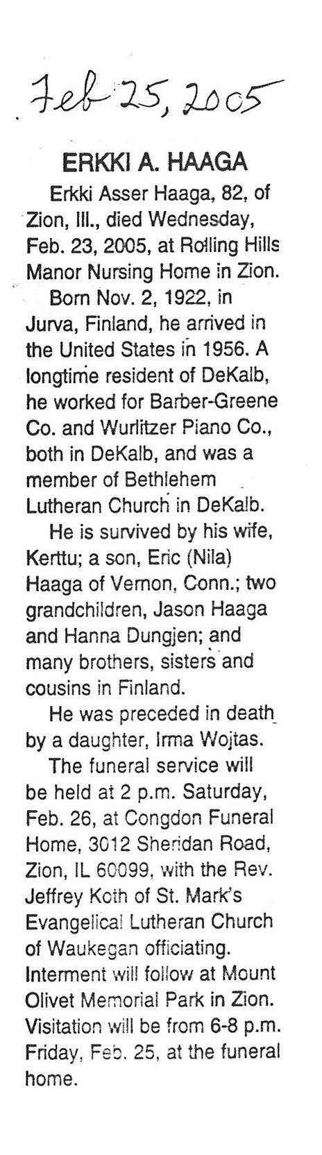 DOB November 2, 1922 in Finland