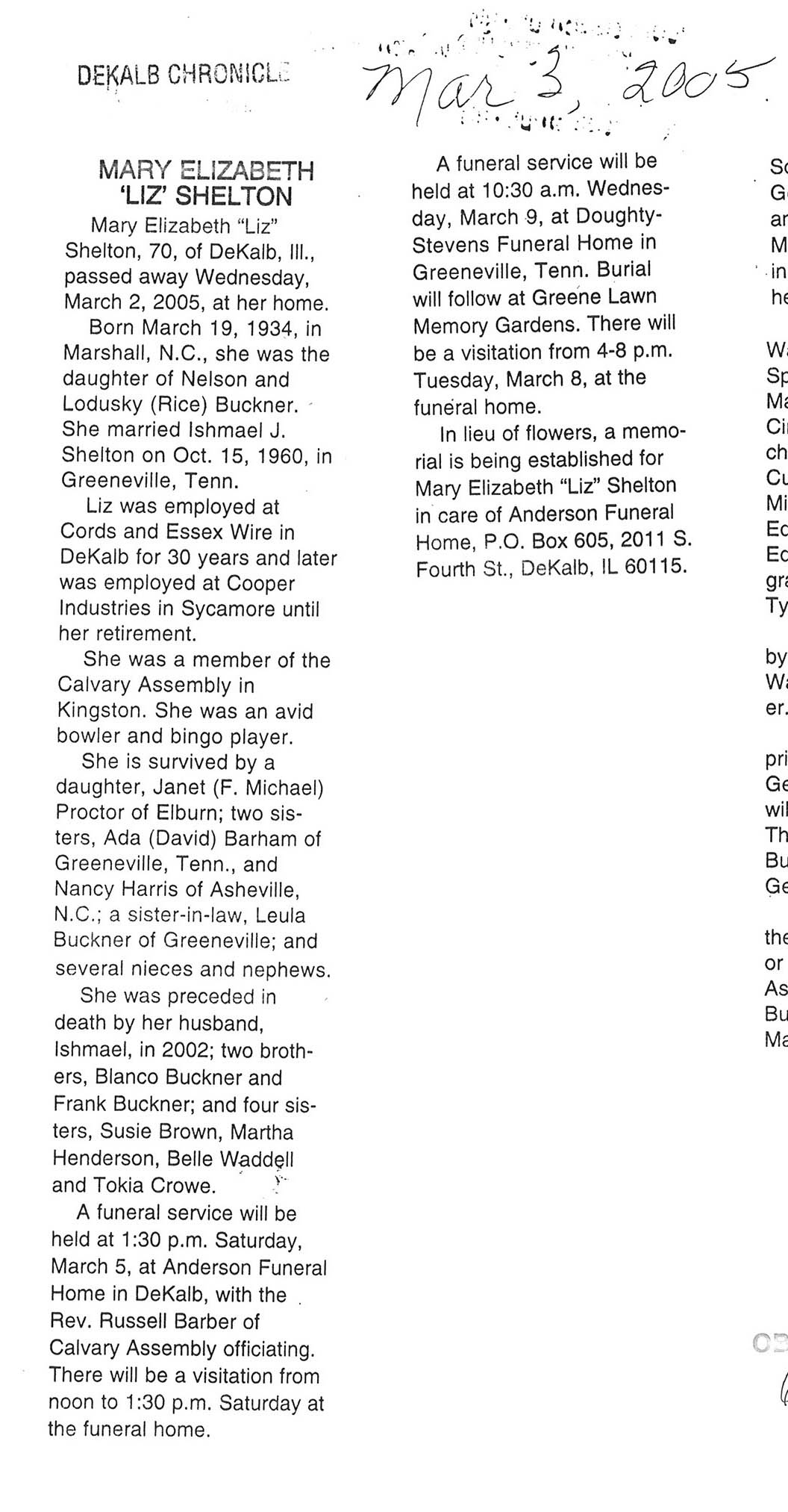 DOB March 19, 1934