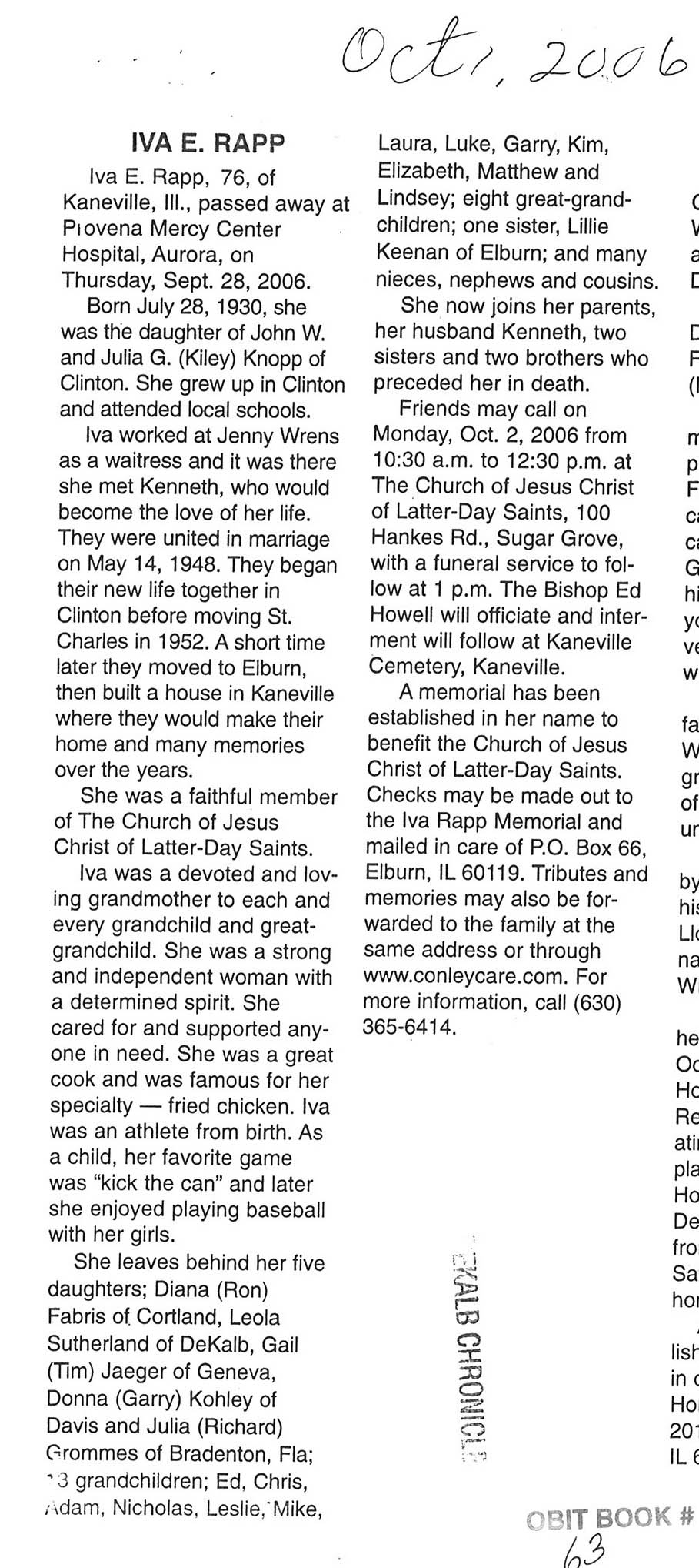 DOB October 20, 1922