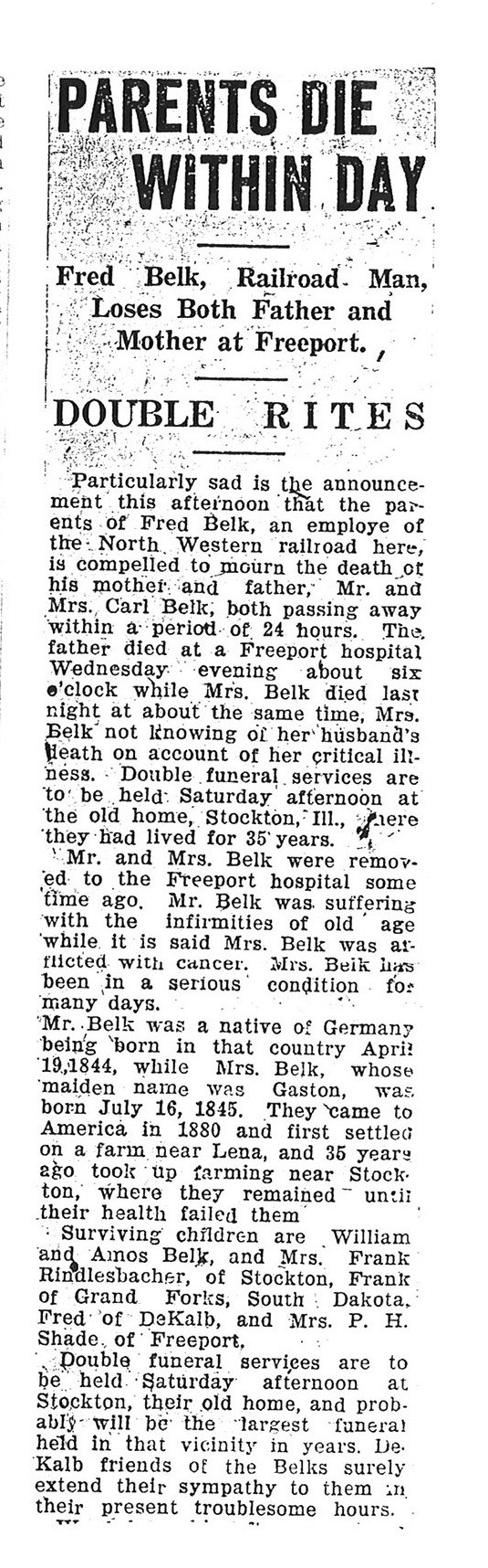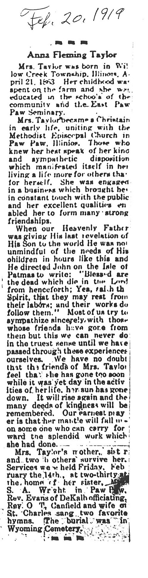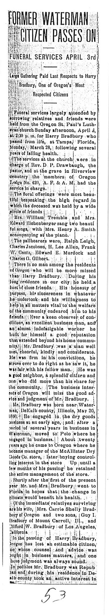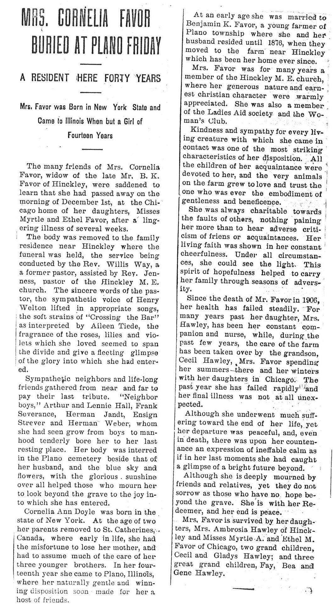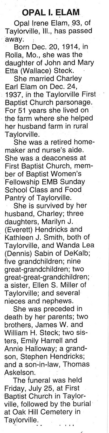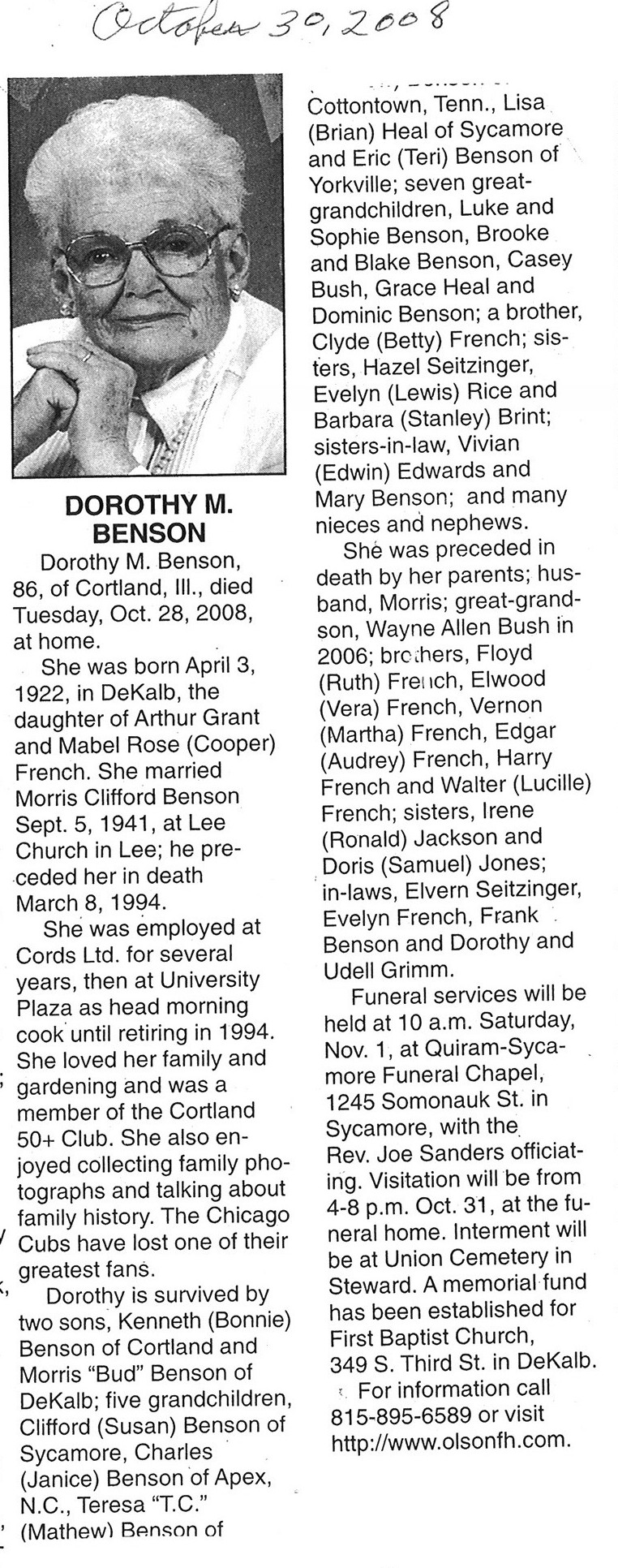 This obit did not give the date of birth, the age or the date of passing. The date for the paper was 20081109