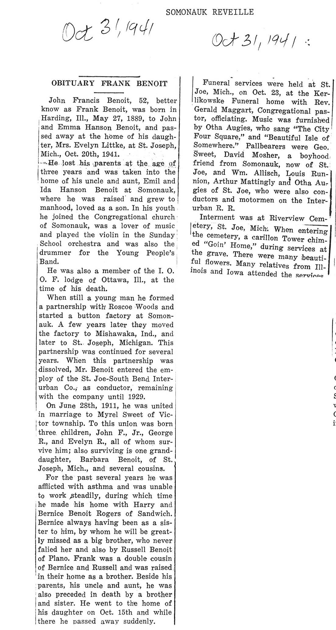DOB 31 December 1888