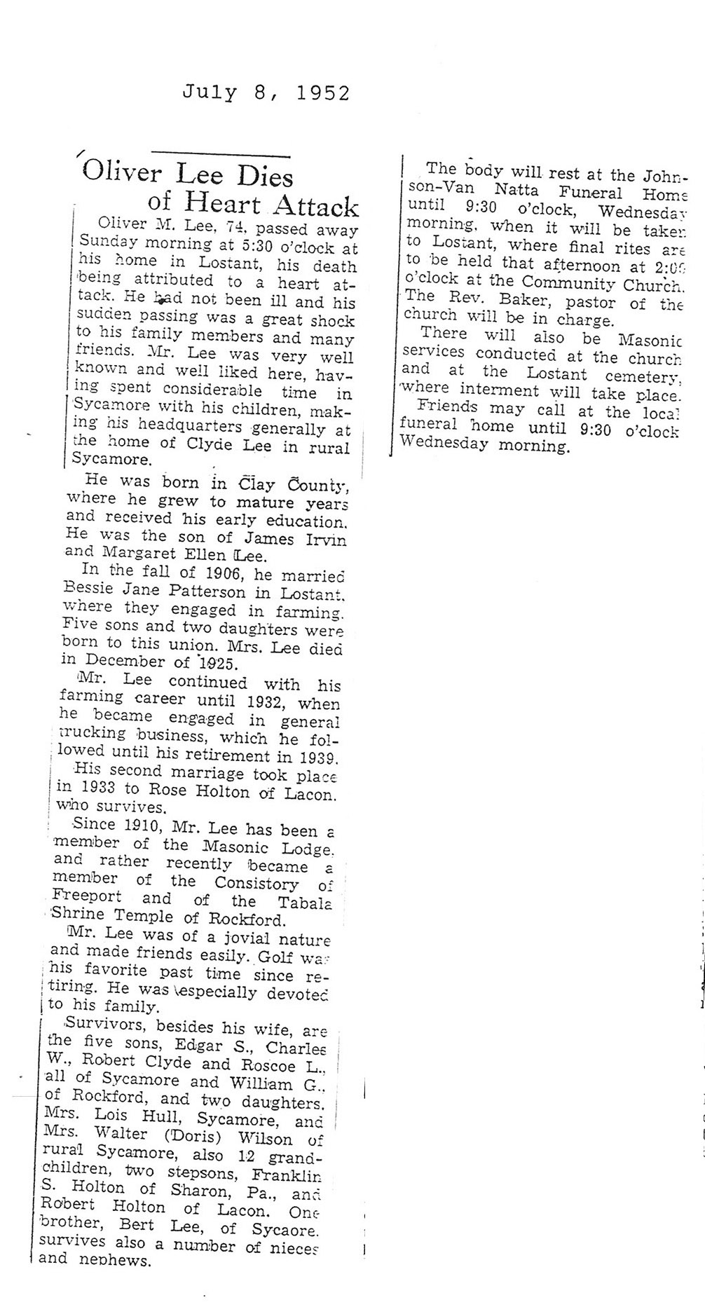 Dob July 21, 1833