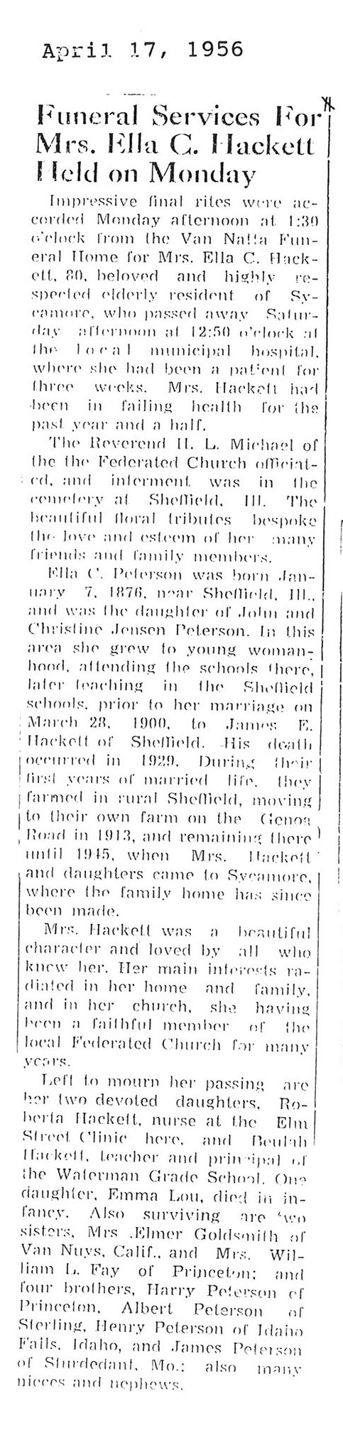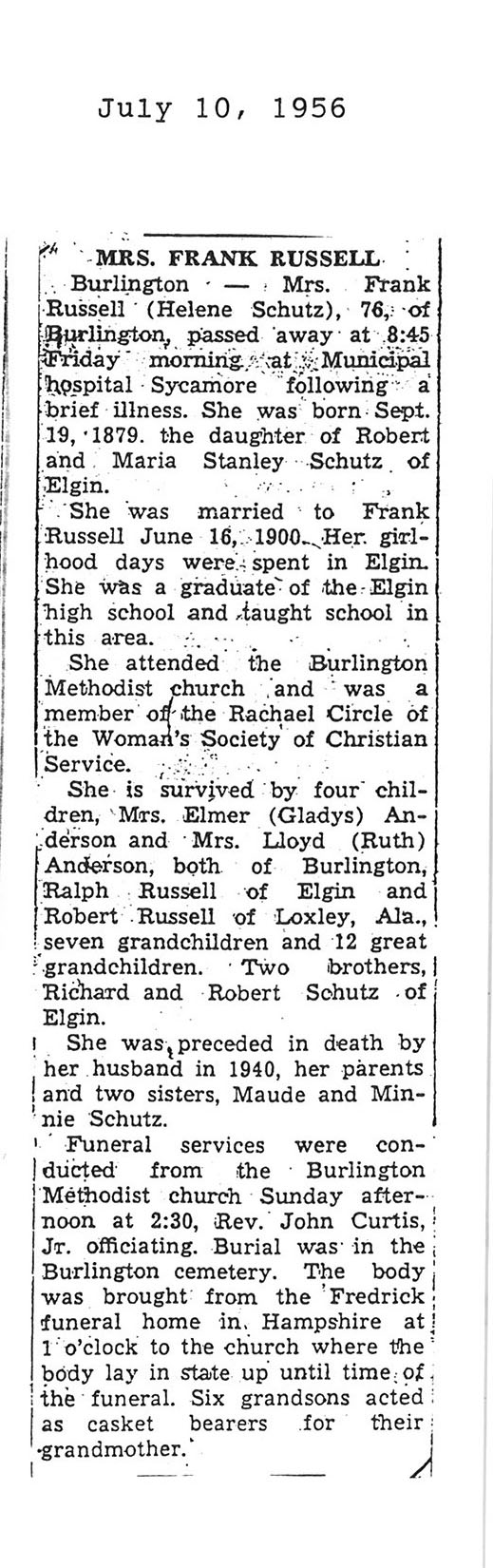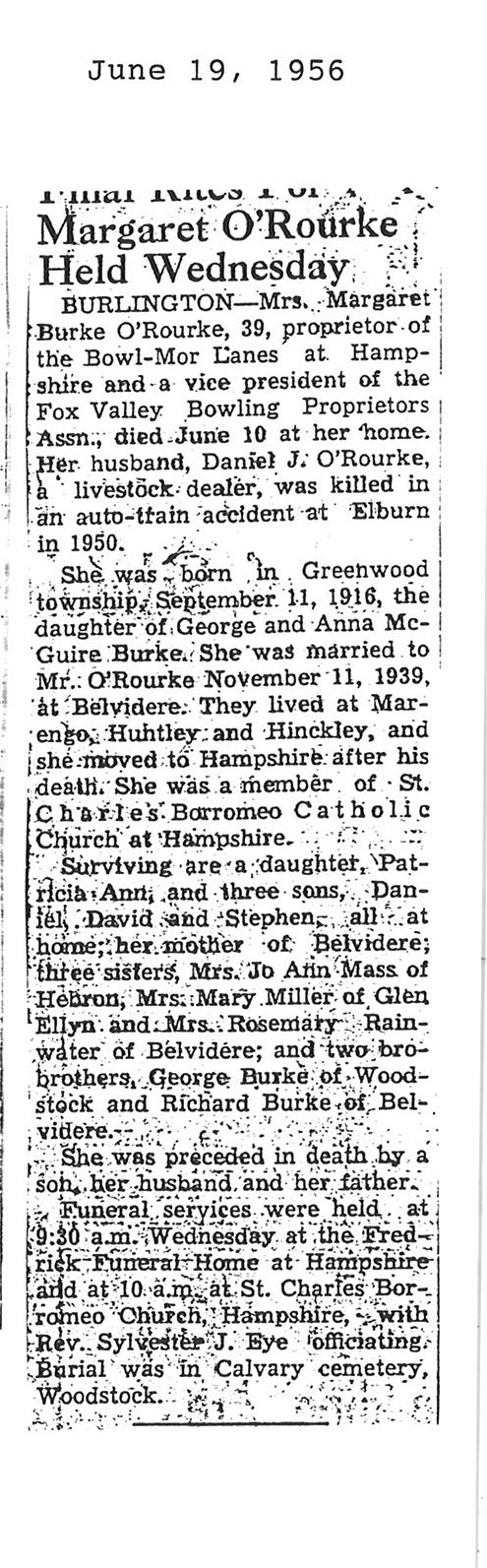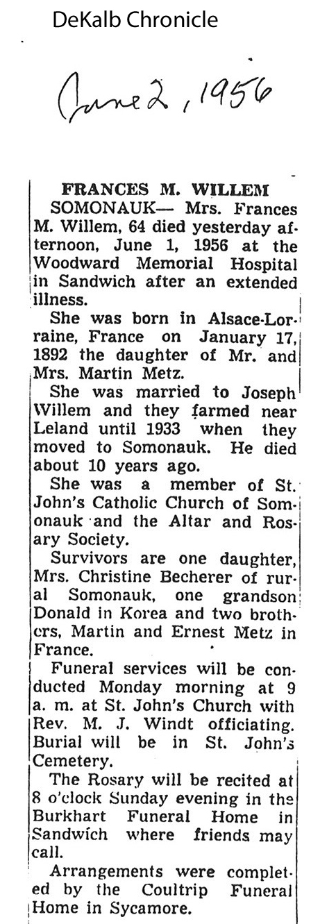 Burial: St. John's Cemetery in Somonauk