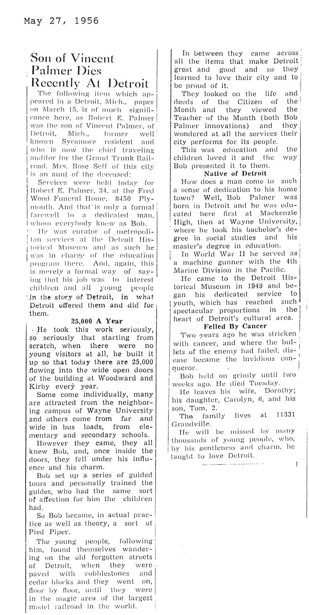 Burial at Ottawa Avenue Cemetery in Ottawa