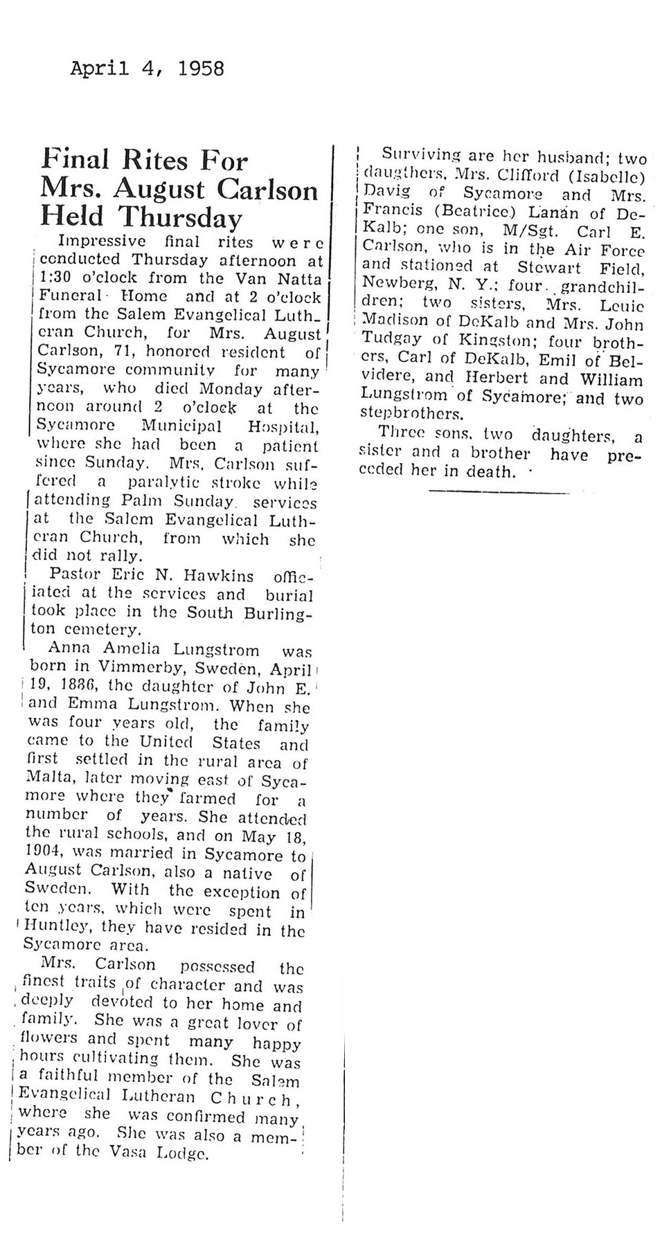 DOB APril 19, 1886 in Sweden
