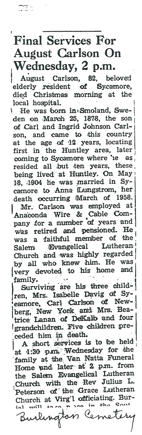 Burial: Mt. Hope Cemetery in Elgin, IL