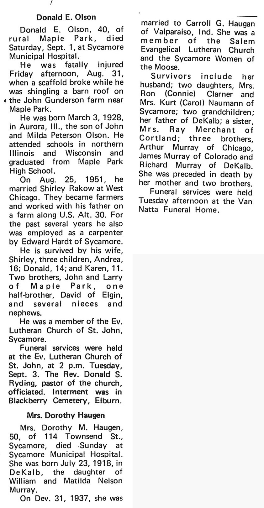 Burial: St. Patrick Cemetery, Rochelle, IL