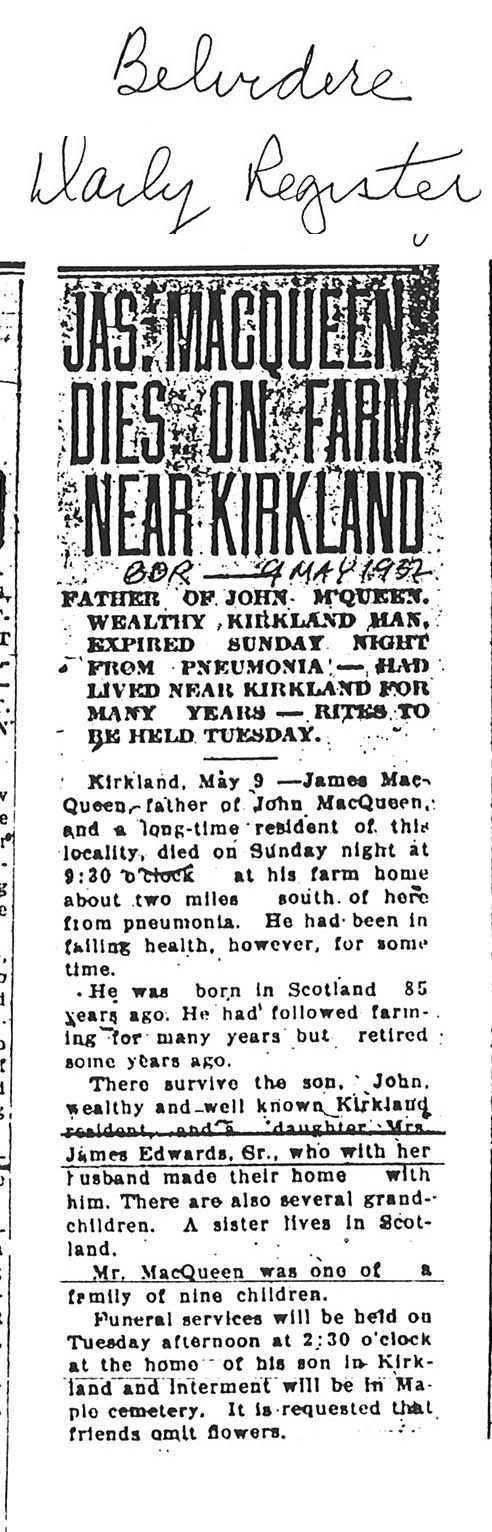 DOB: 85 years old No cemetery record for Kirkland Cemetery
