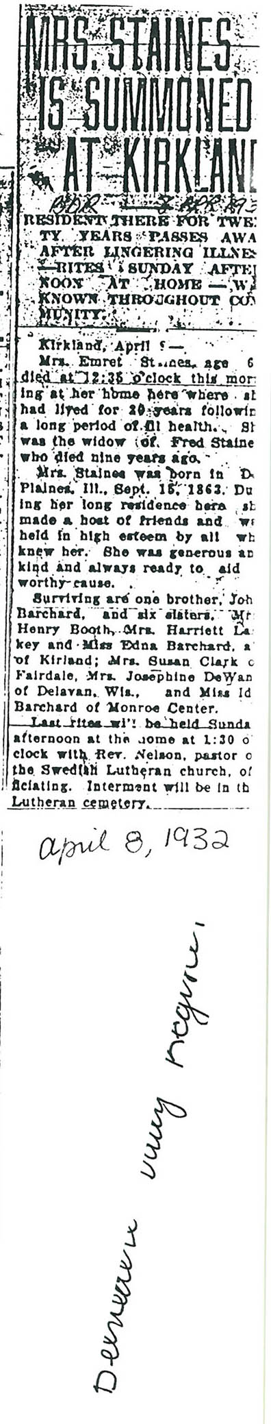 Deceased April 8, 1932