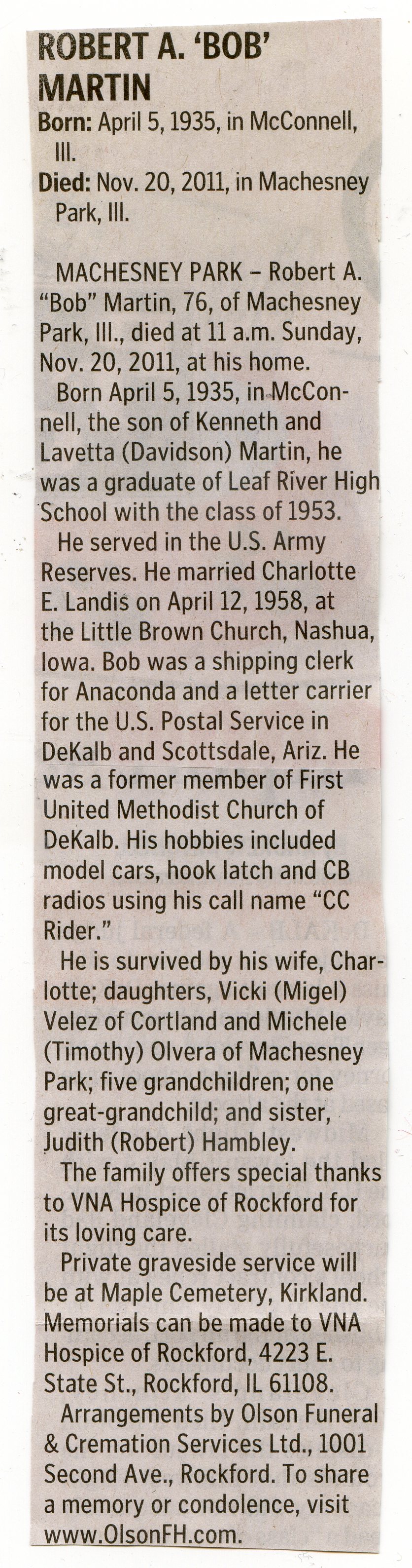 Home » Viewing all obituaries located at "Maple/Pine HIll/Kirkland Cemetery" (625 matches)
