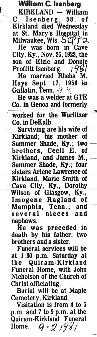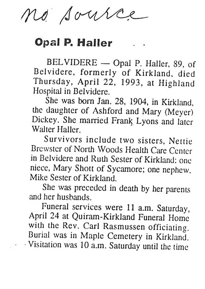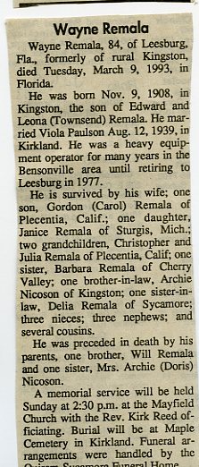 Home » Viewing all obituaries located at "Maple/Pine HIll/Kirkland Cemetery" (625 matches)