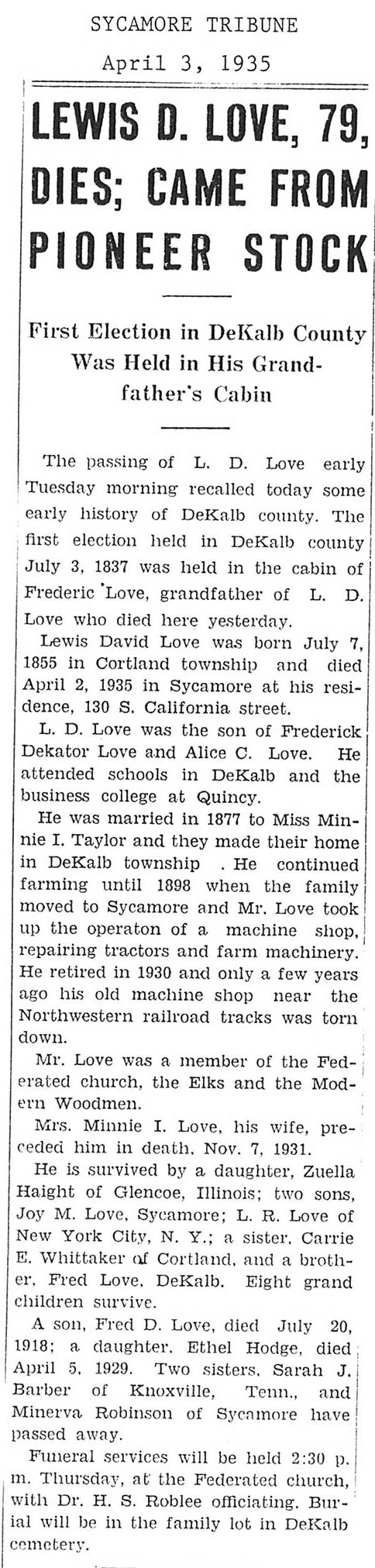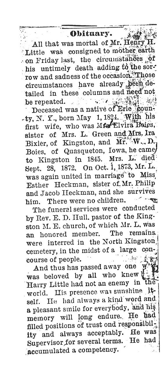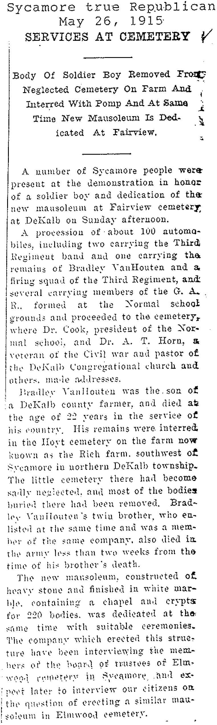 No date of birth article about moving body from family farm to Elwood Cemetery