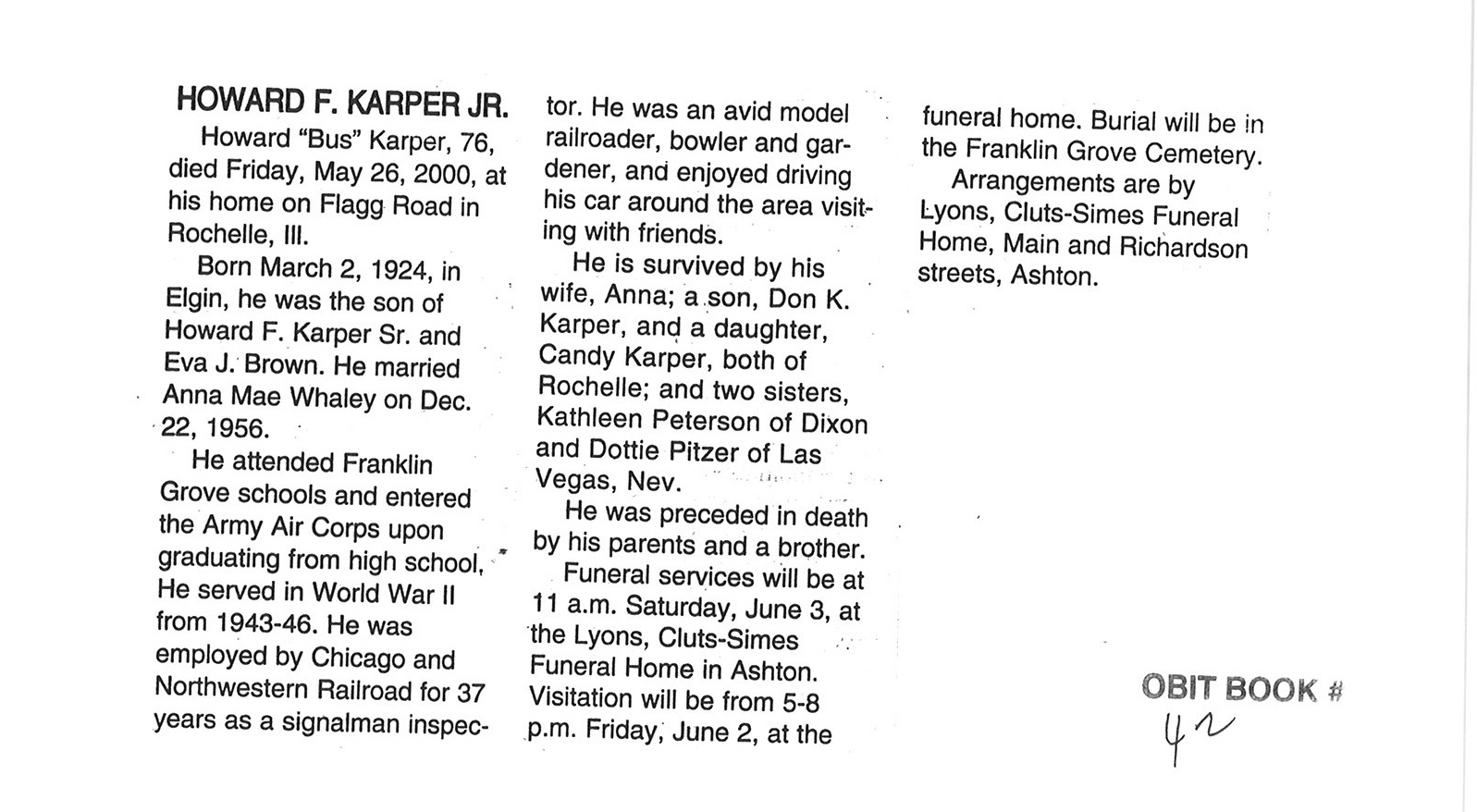 DOB Janaury 11, 1919