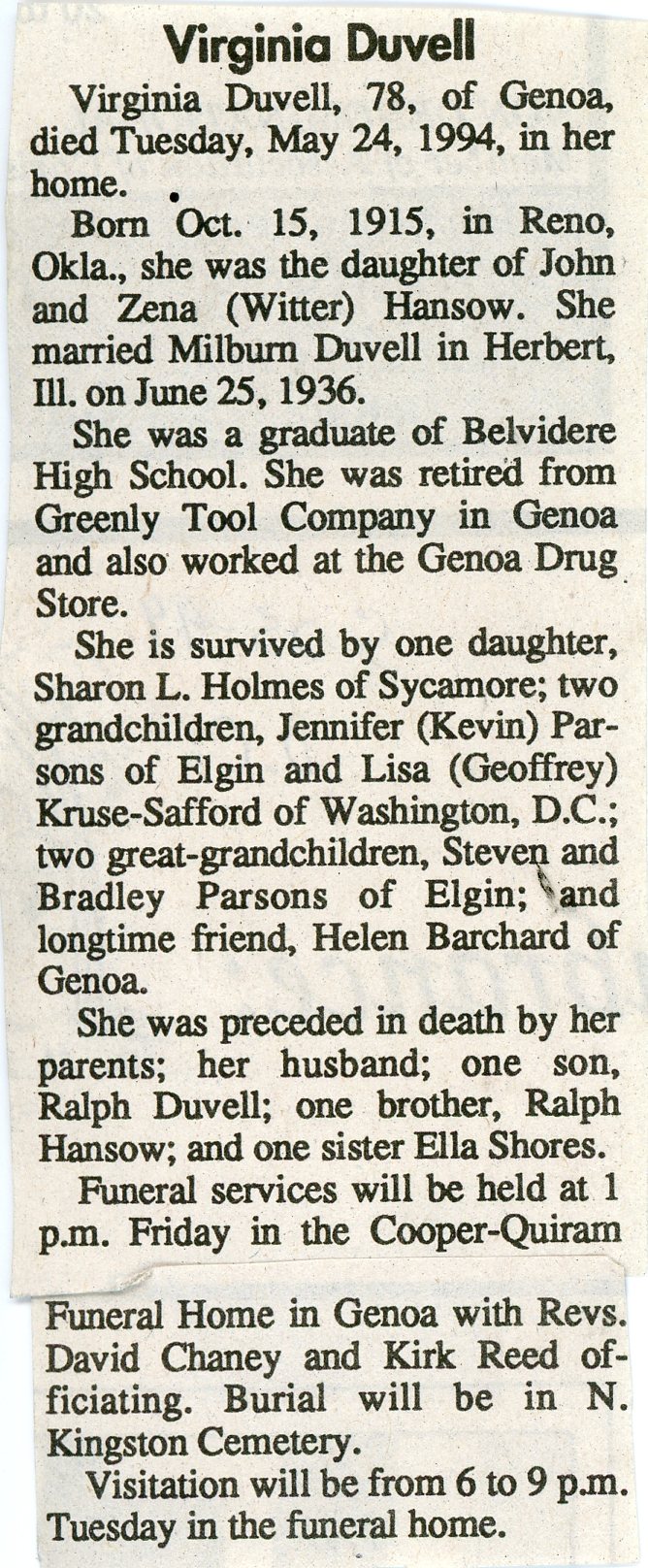 Maiden name - VanDusen
