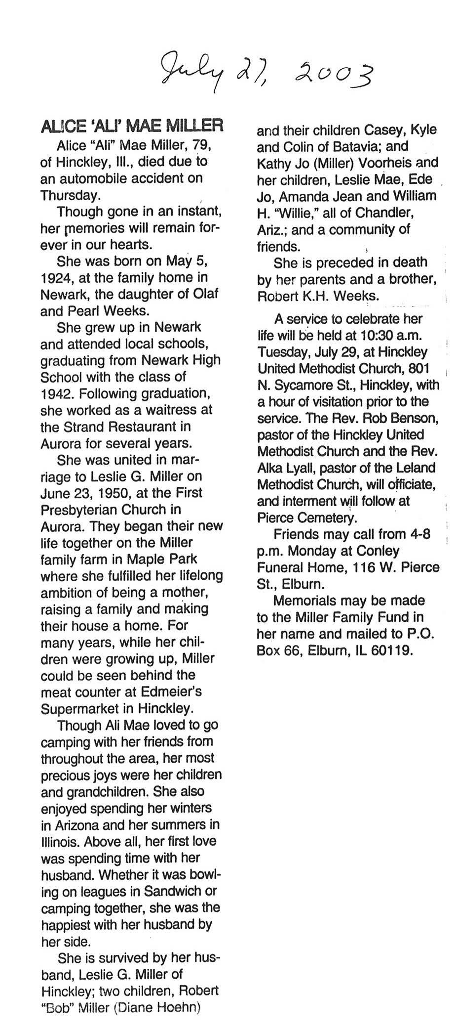 Deceased July 27, 2003