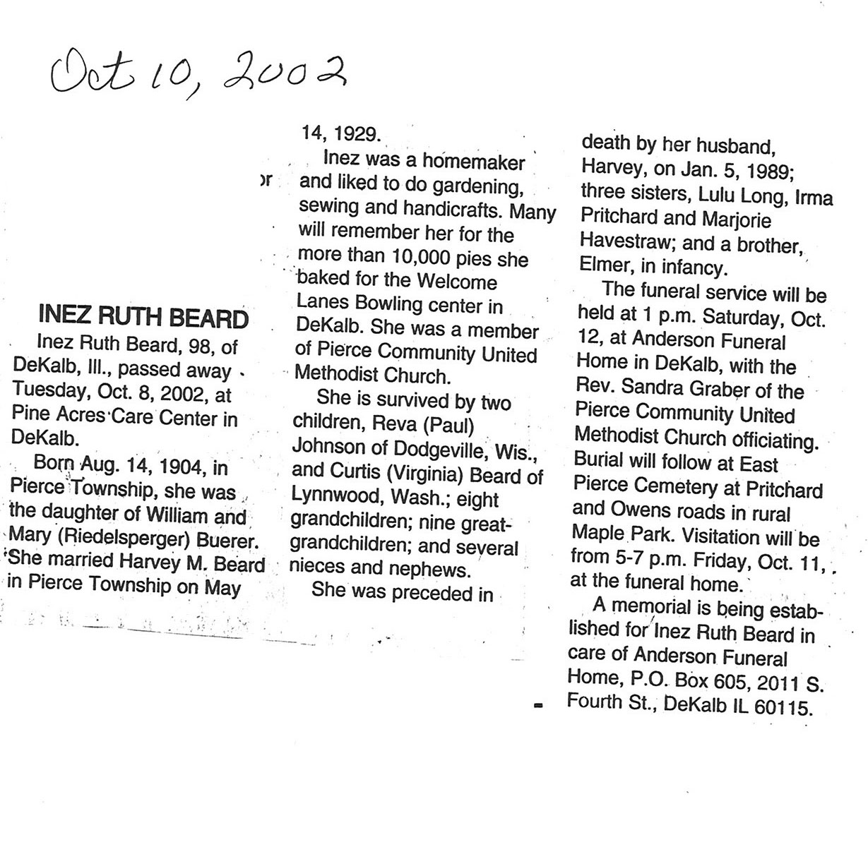 Home » Viewing all obituaries located at "East Pierce Cemetery/Community Methodist/Methodist Church Cemetery" (121 matches)