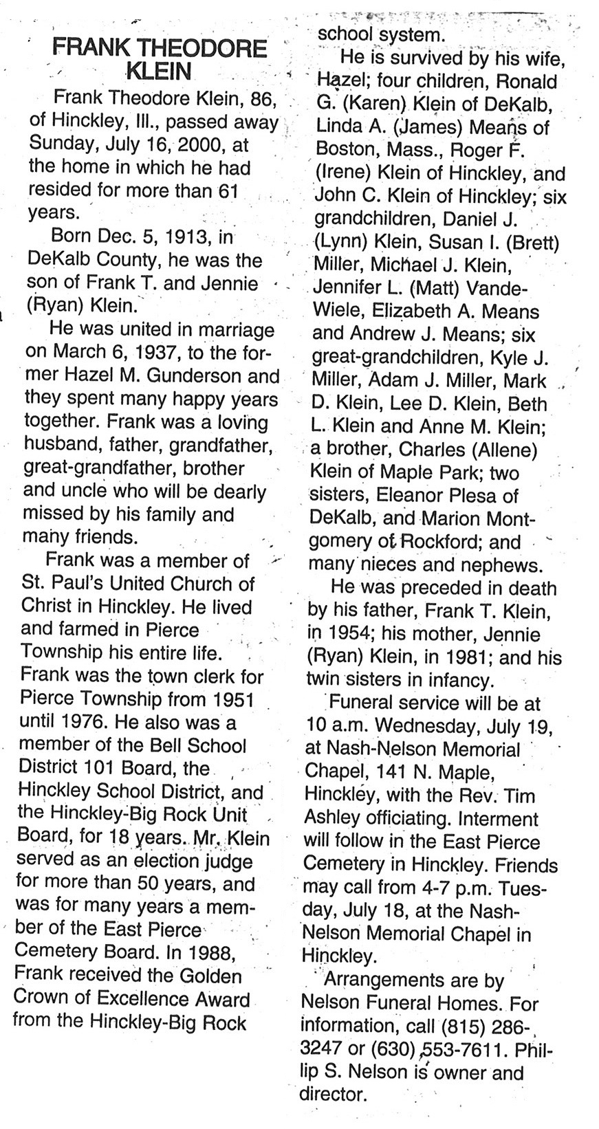 Deceased July 16, 2000