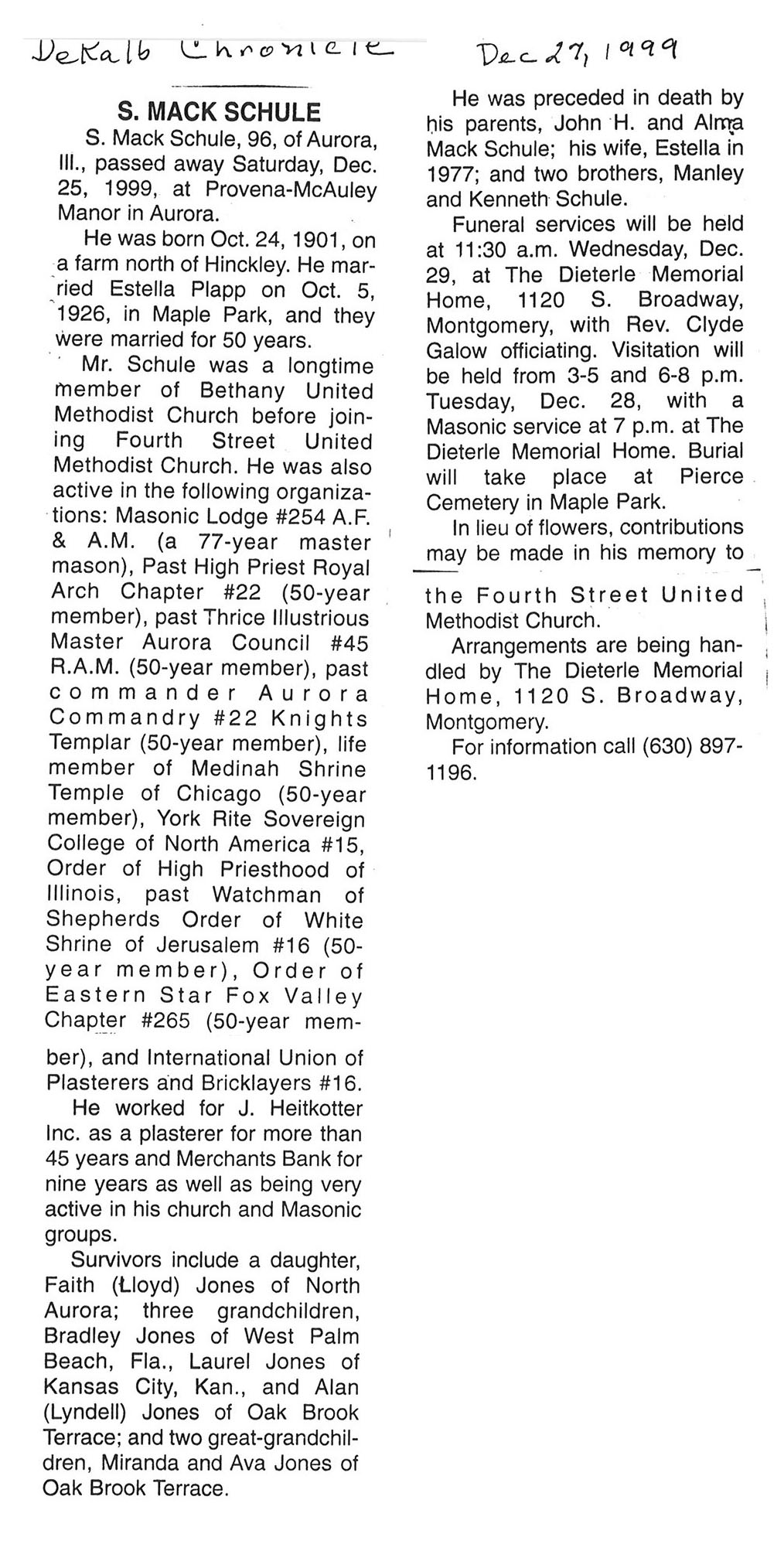 Deceased Dec. 25, 1999