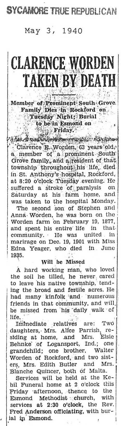 Home » Viewing all obituaries located at "Greenview/Esmond Cemetery" (132 matches)