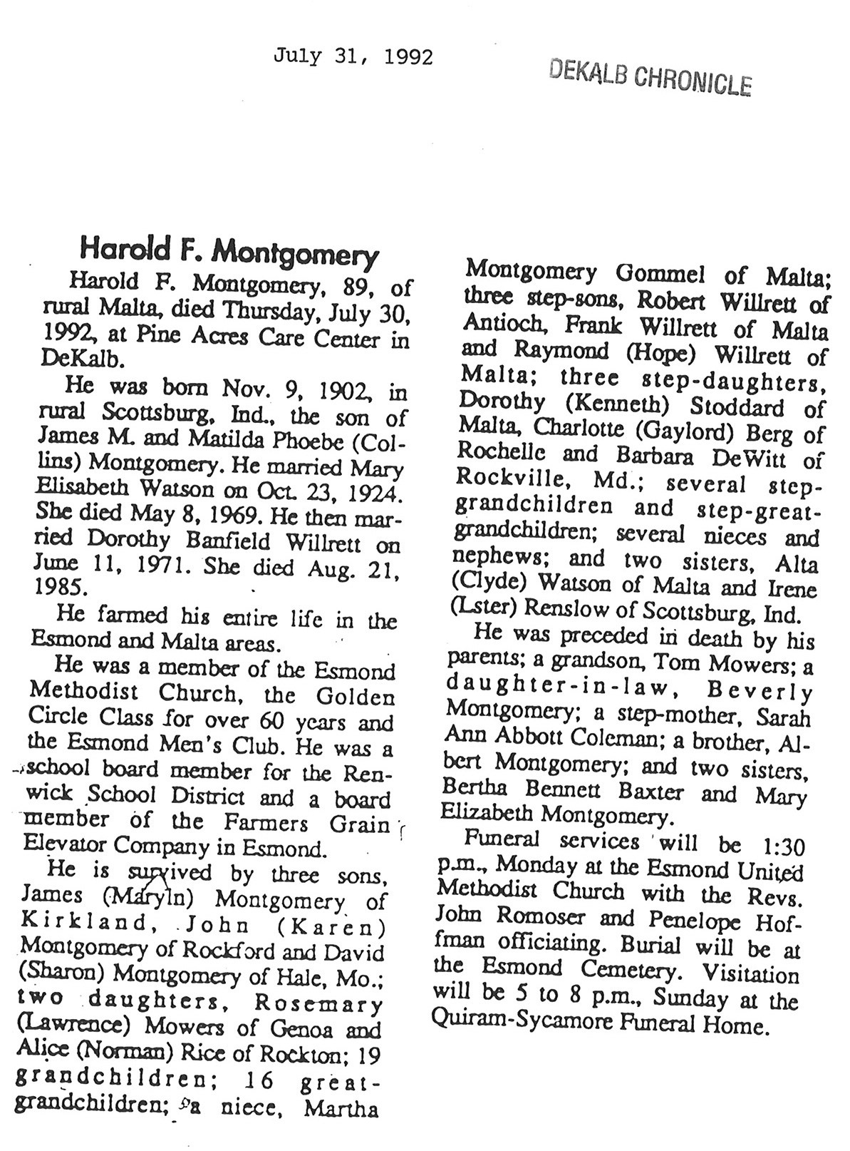 Home » Viewing all obituaries located at "Greenview/Esmond Cemetery" (132 matches)