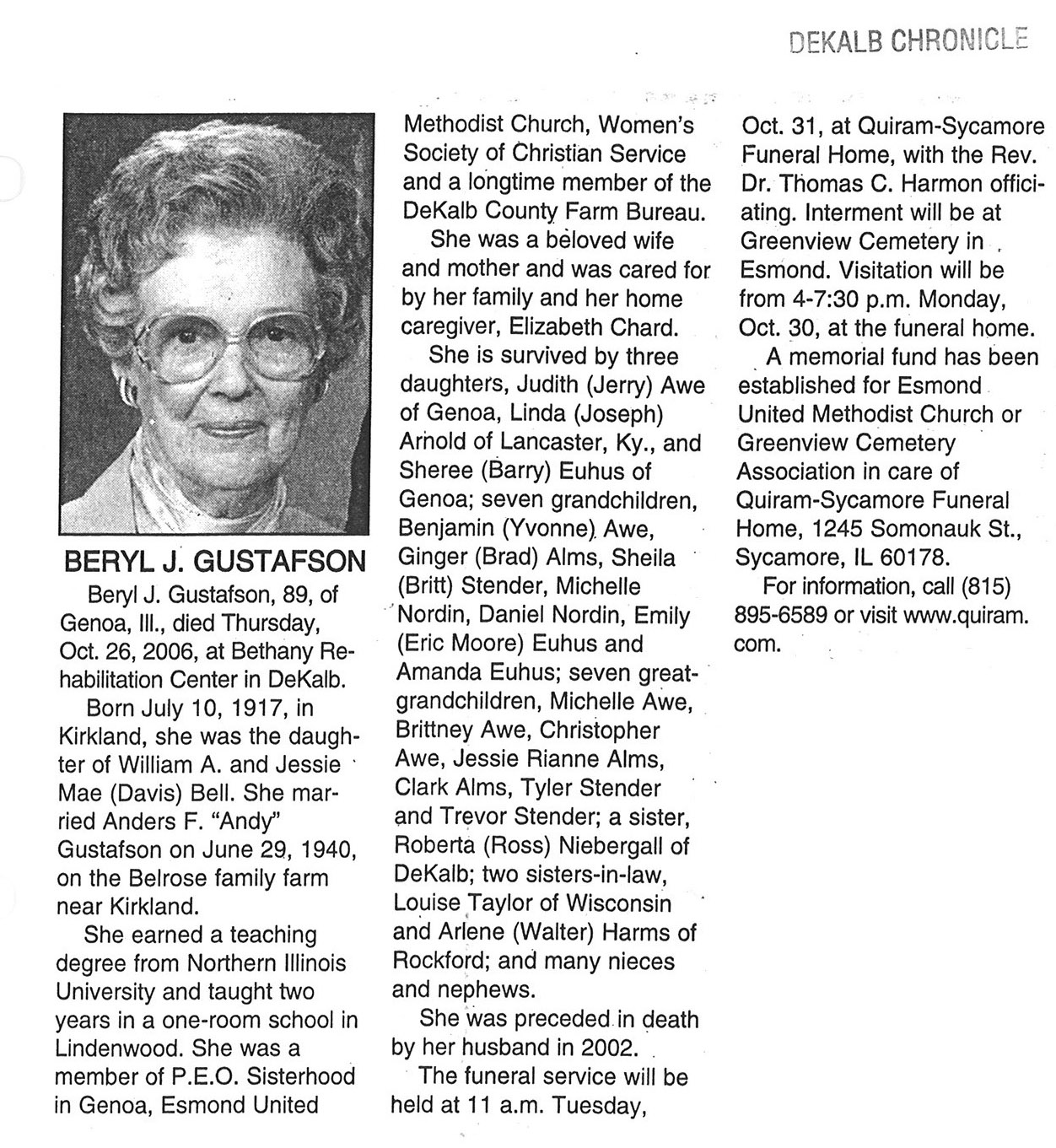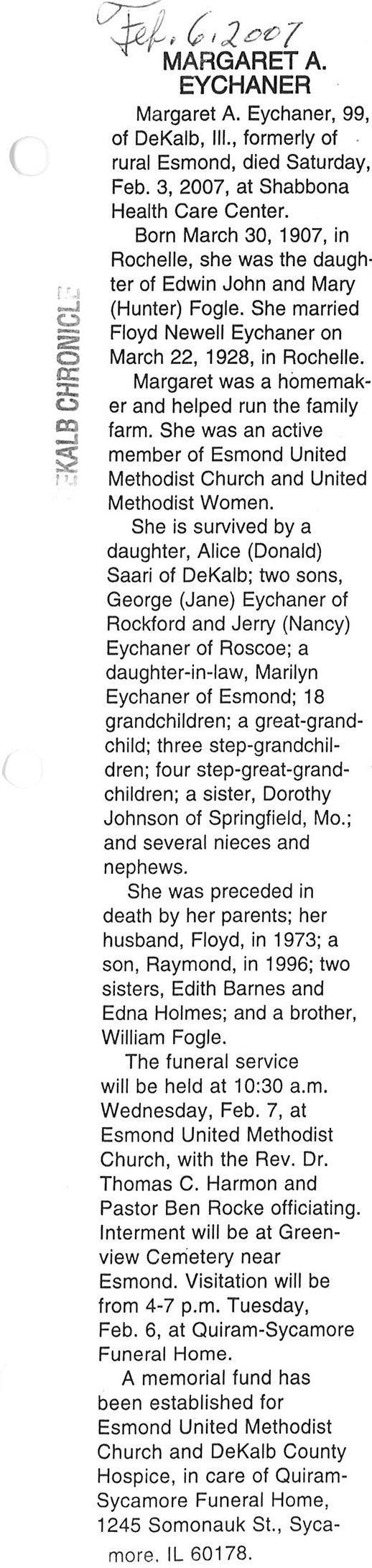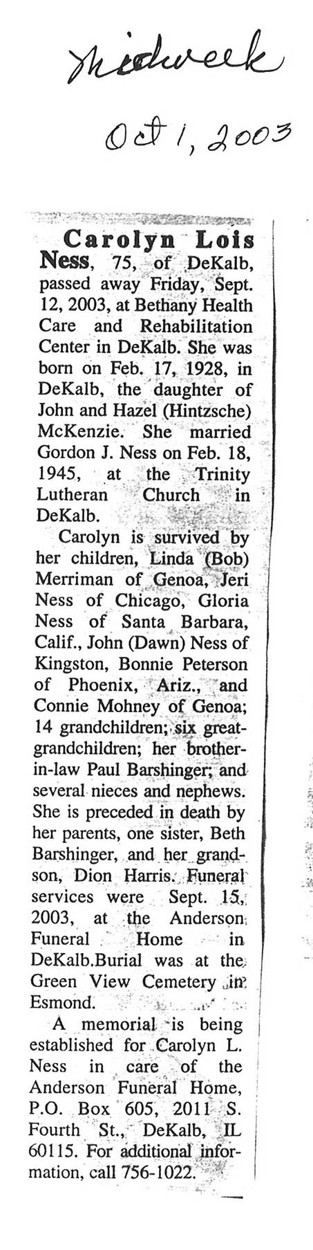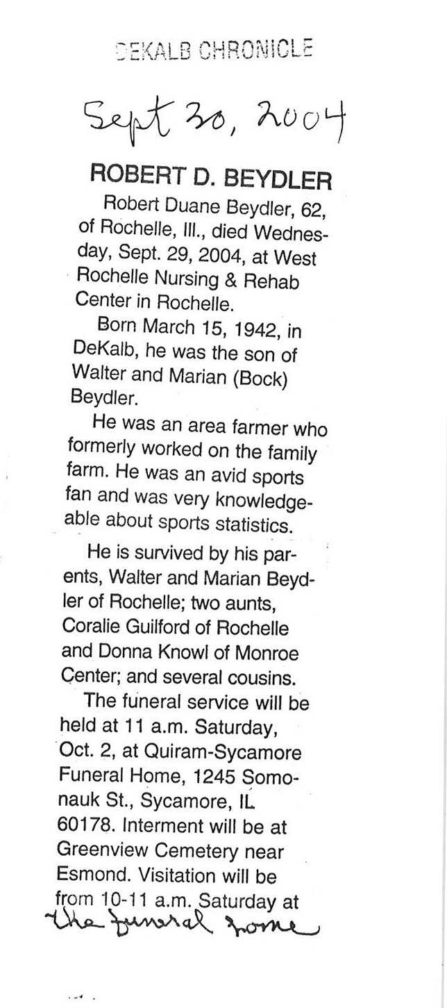 Home » Viewing all obituaries located at "Greenview/Esmond Cemetery" (132 matches)