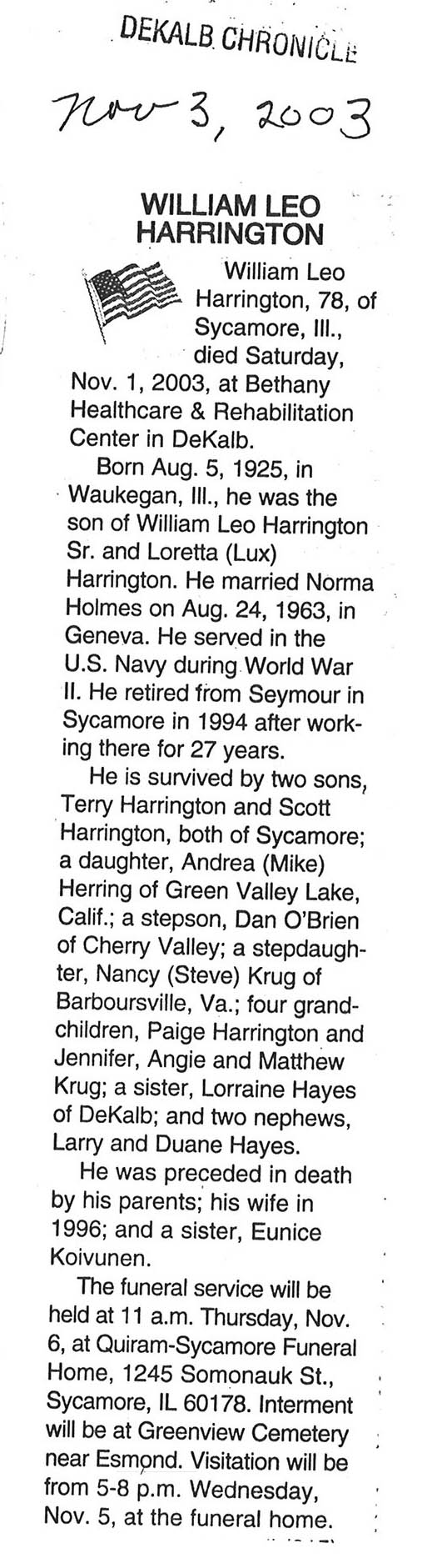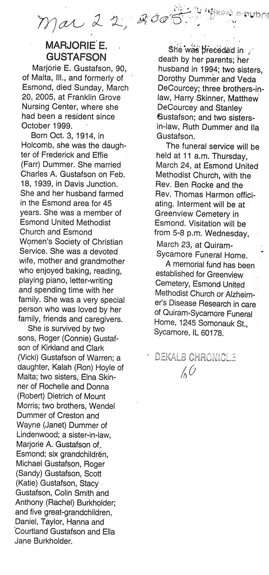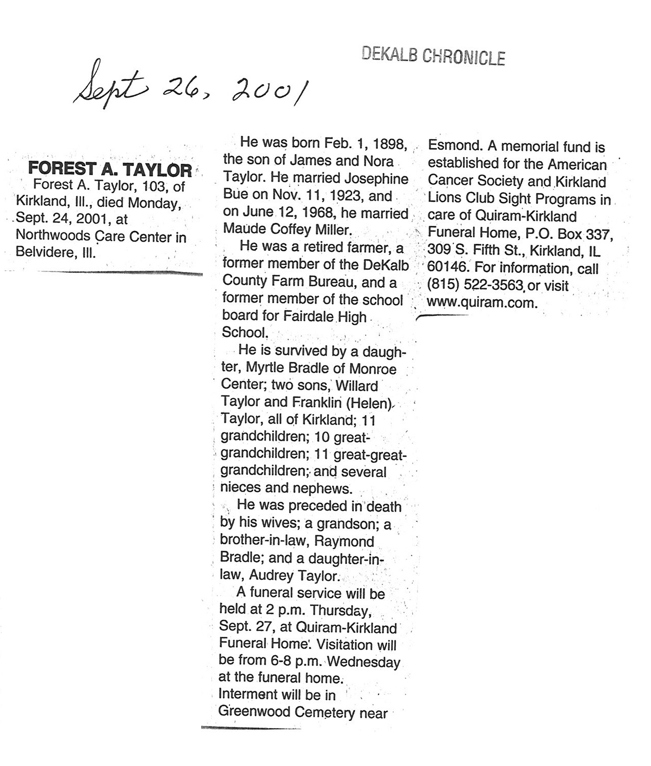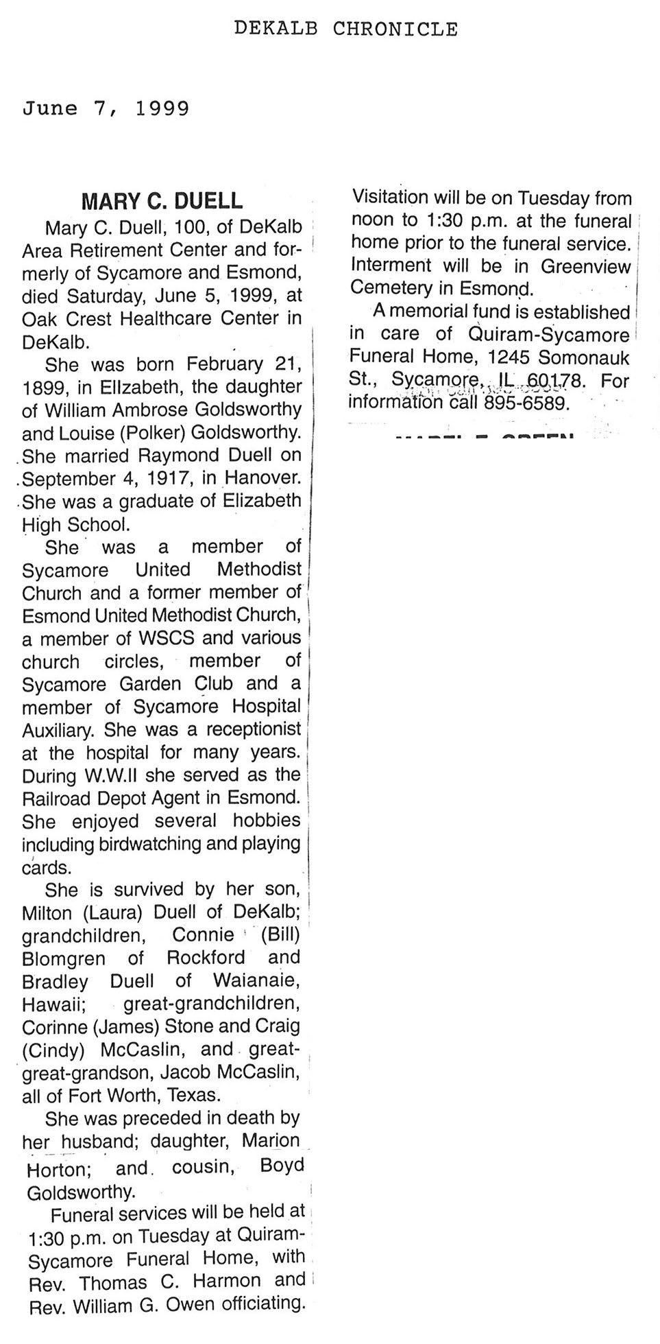 Home » Viewing all obituaries located at "Greenview/Esmond Cemetery" (132 matches)