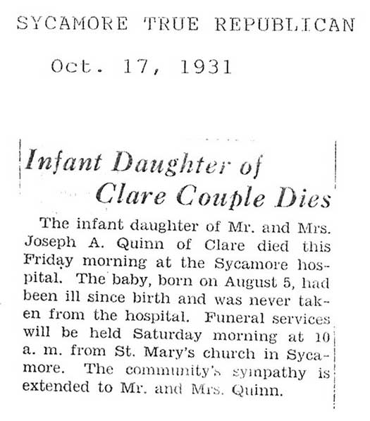 DOB 5 August 1931. Daughter of Joseph A. Quinn