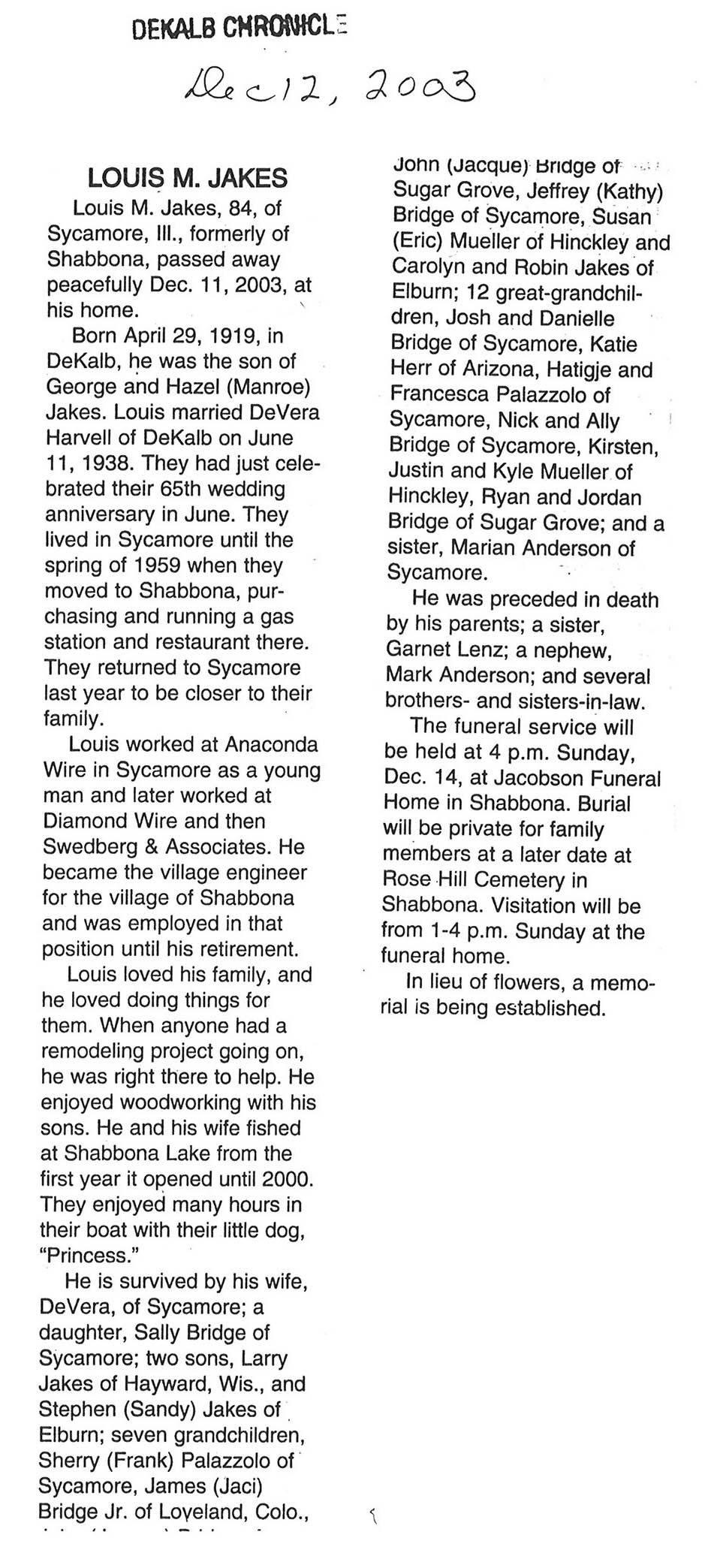 DOB December 6, 1914
