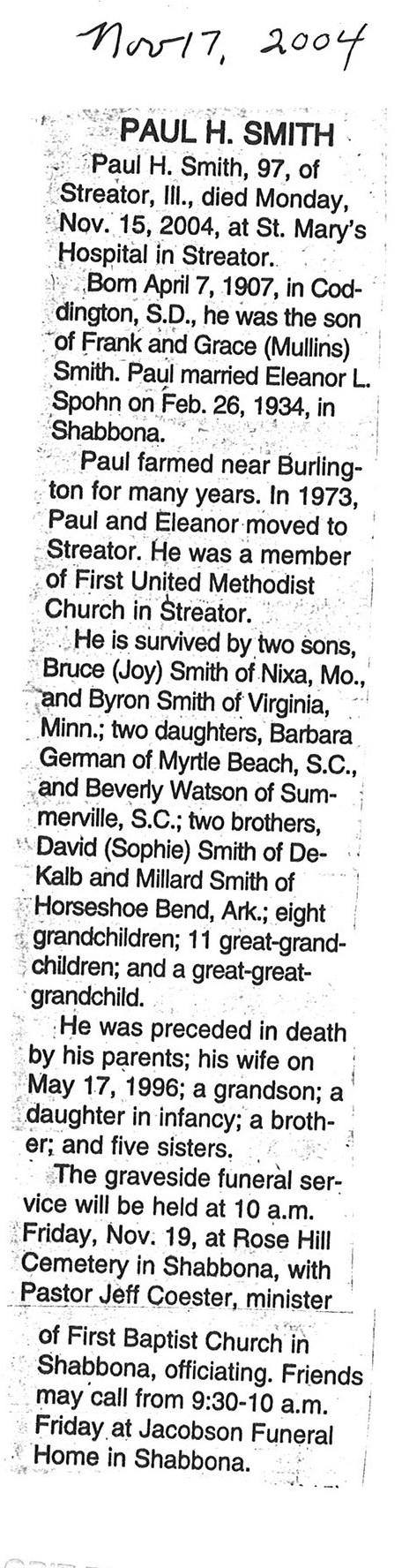 DOB Nobember 6, 1923