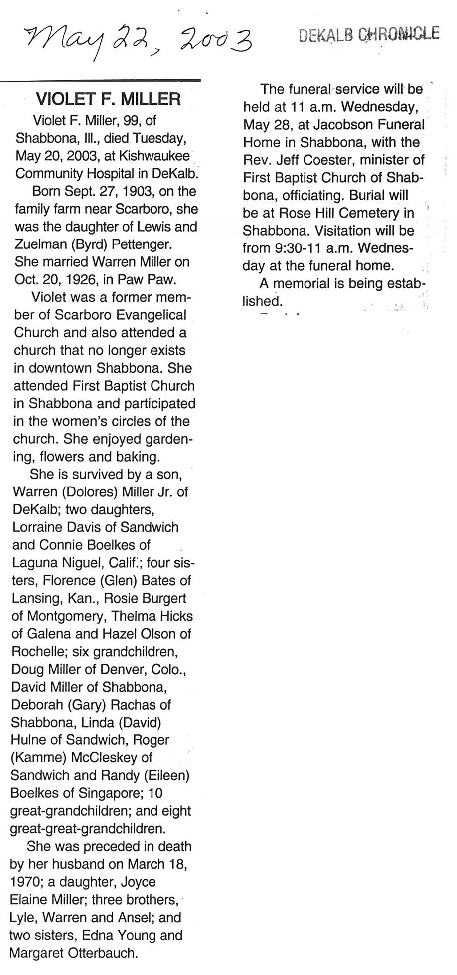 Home » Viewing all obituaries located at "Rose Hill/Ray Cemetery" (567 matches)