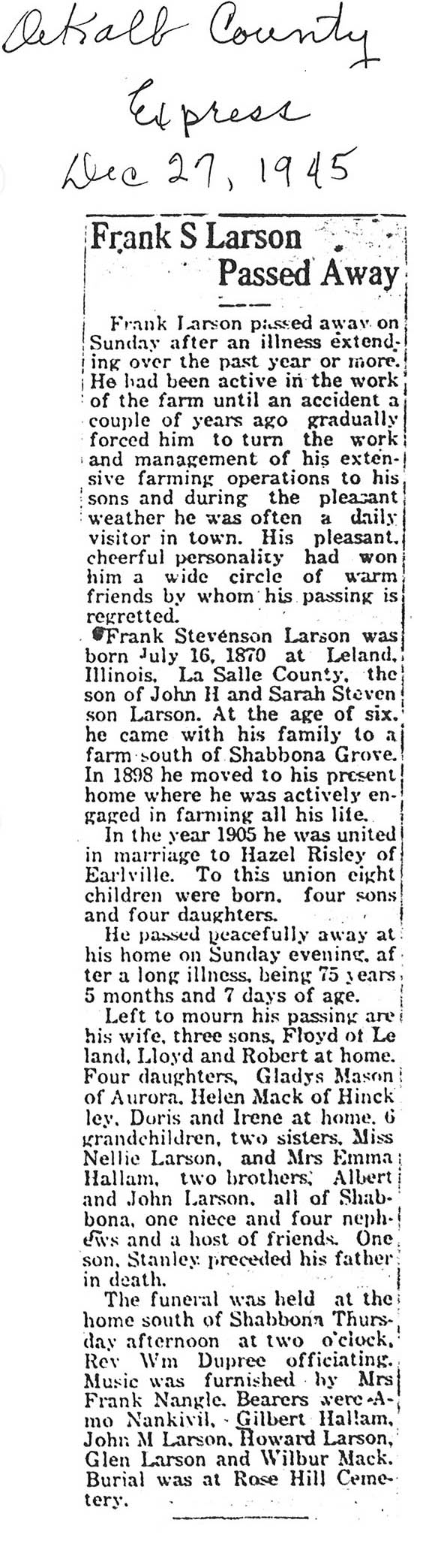 Home » Viewing all obituaries located at "Rose Hill/Ray Cemetery" (567 matches)