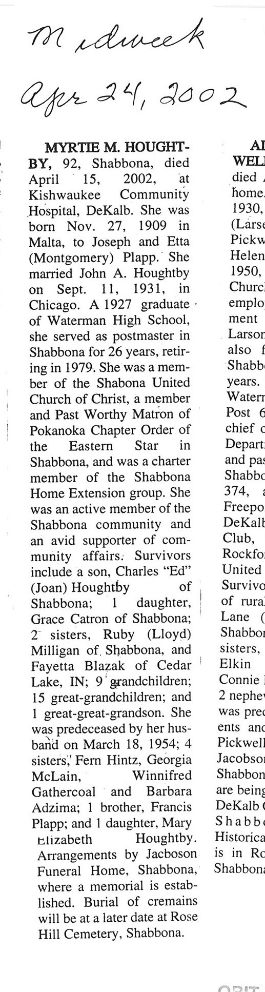DOB Janaury 18, 1908