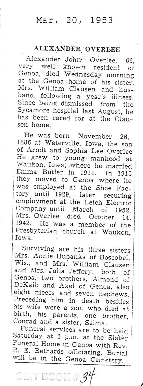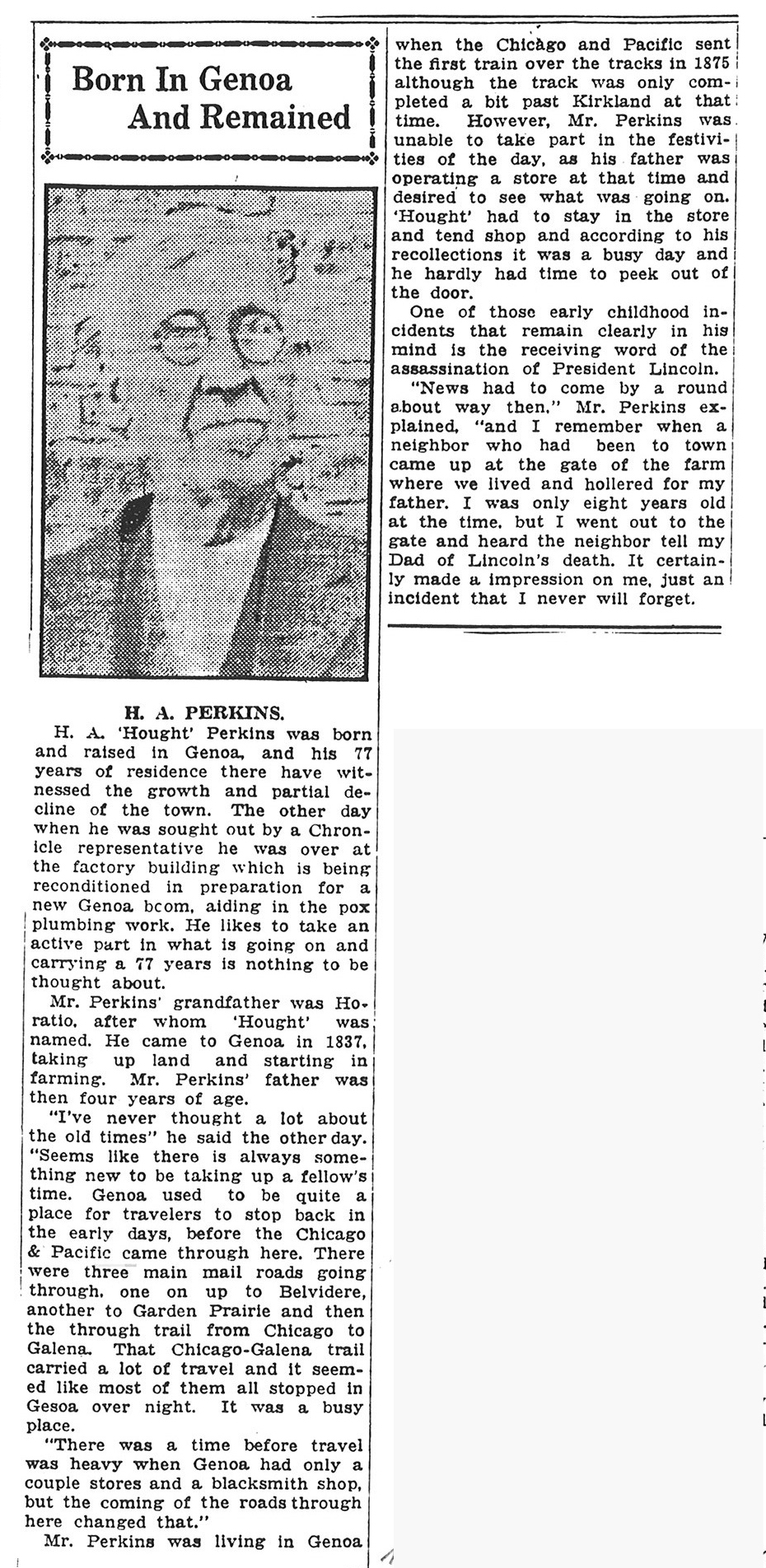 Interview article is from DeKalb Daily Chronicle 9/10/1934