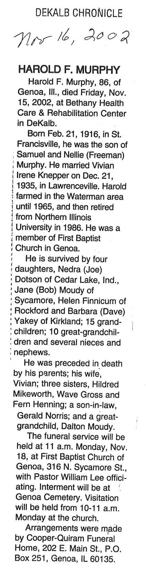 DOB November 6, 1916