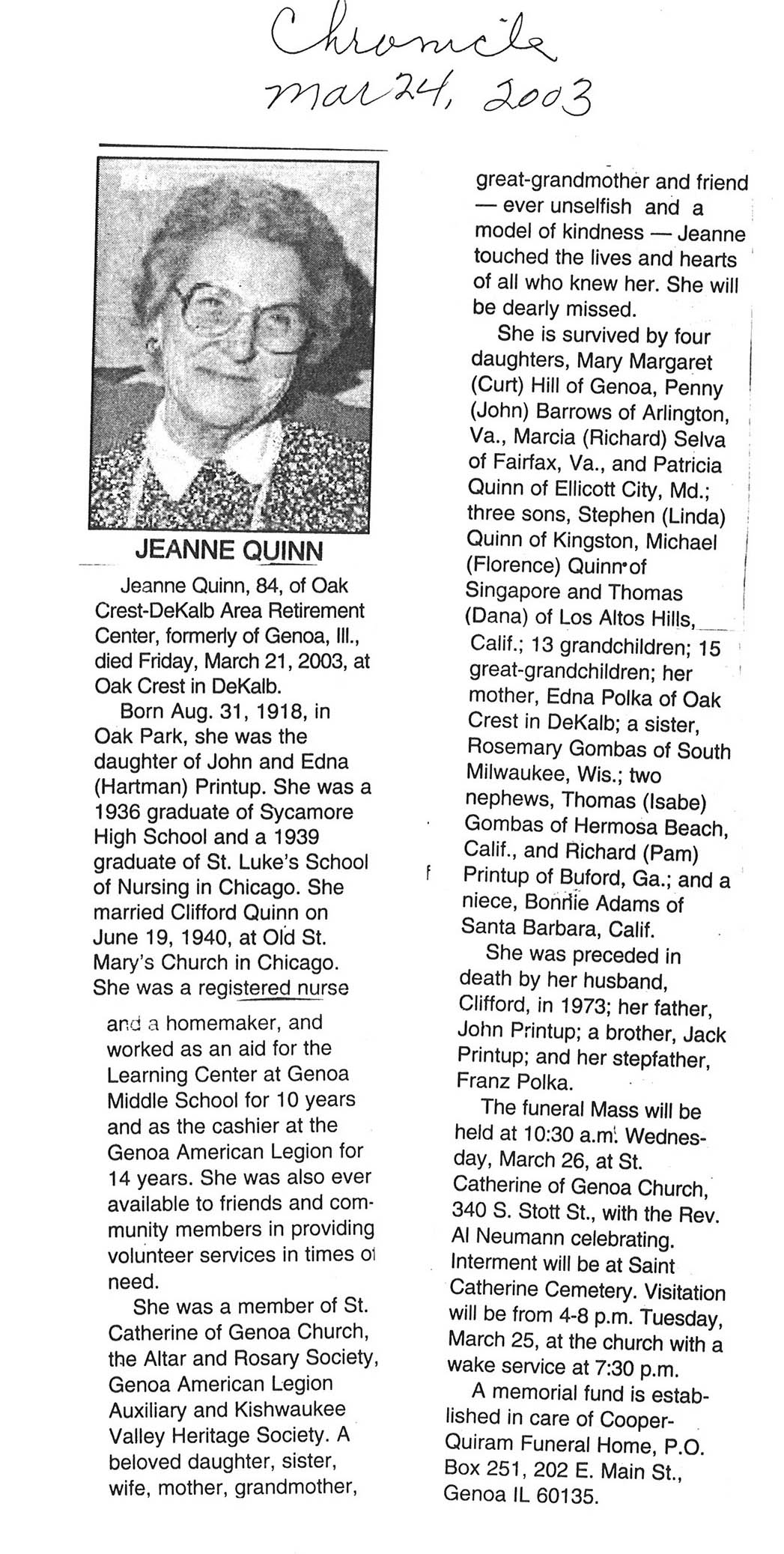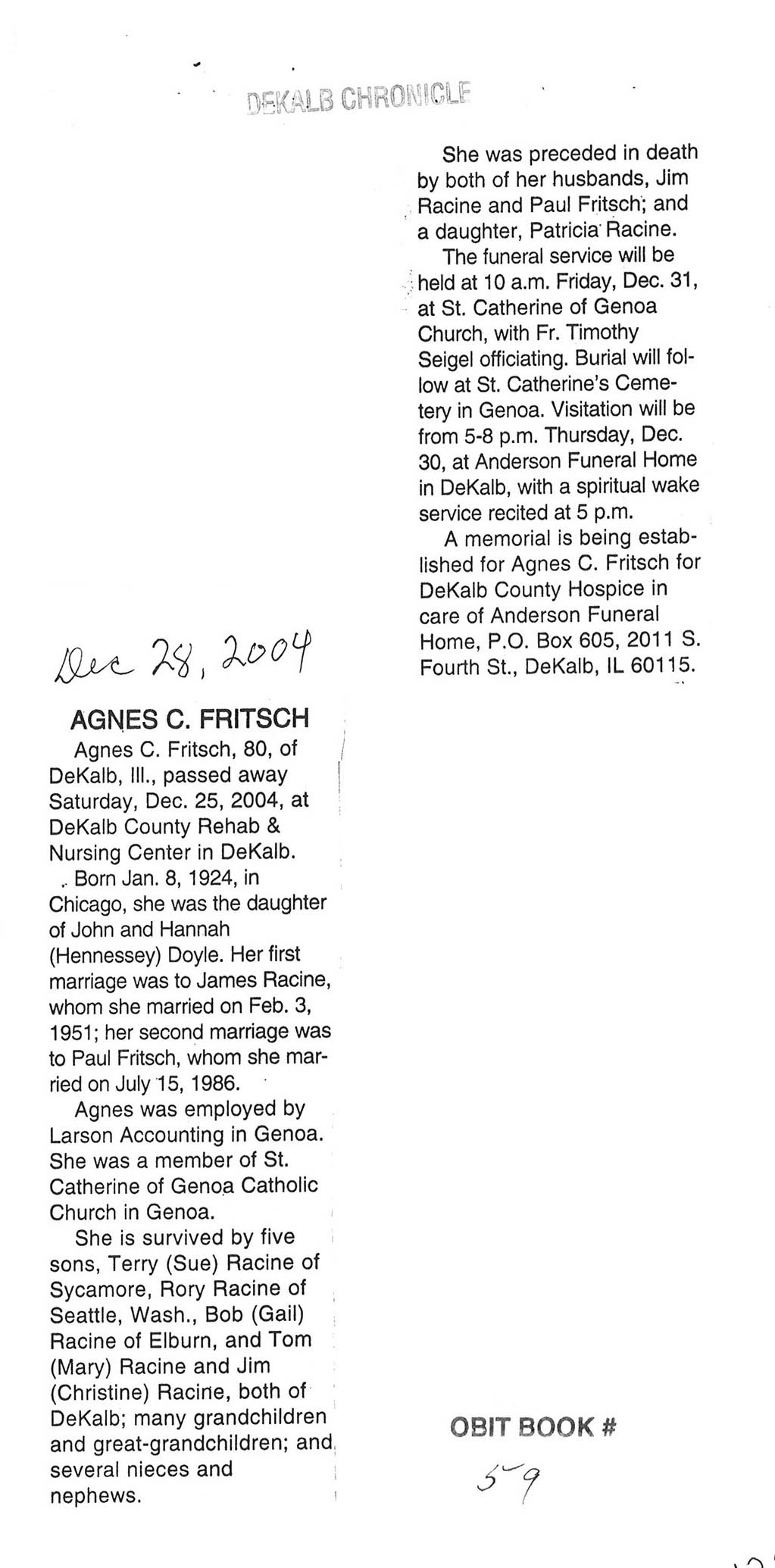Home » Viewing all obituaries located at "St. Catherine Cemetery" (222 matches)