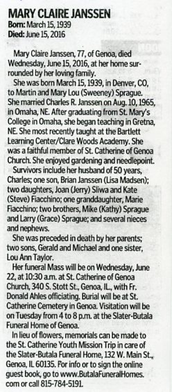 Home » Viewing all obituaries located at "St. Catherine Cemetery" (222 matches)