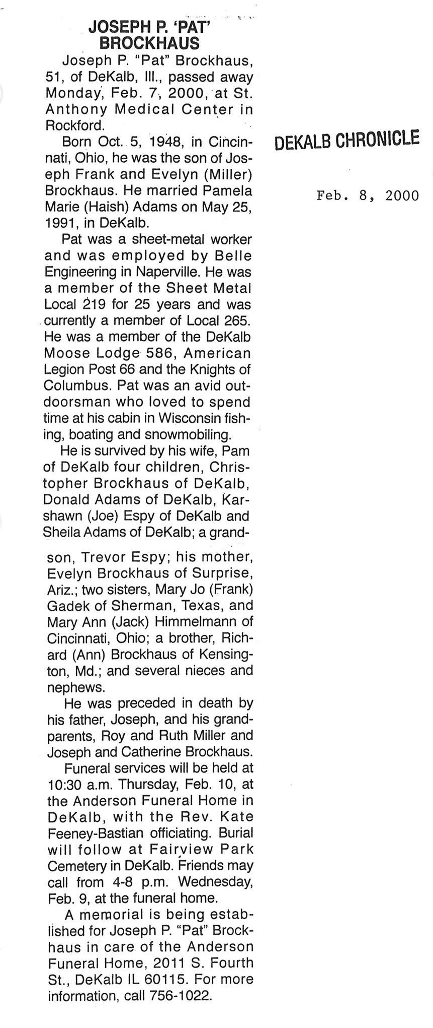 Joseph 'Pat" Brockhaus