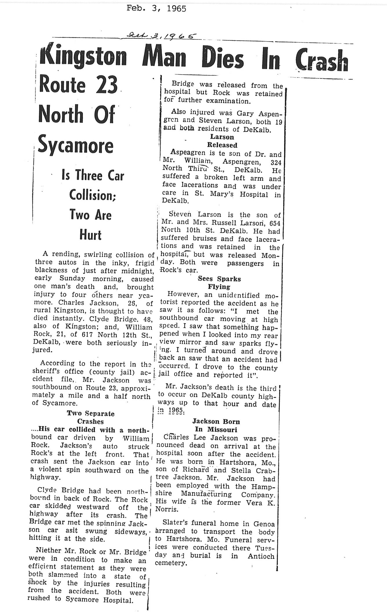 Not obit, but article detailing the accident which caused his death Lived in rural Kingston Born in Hartshora, MO Burial in Antioch Cemeter in Hartshora
