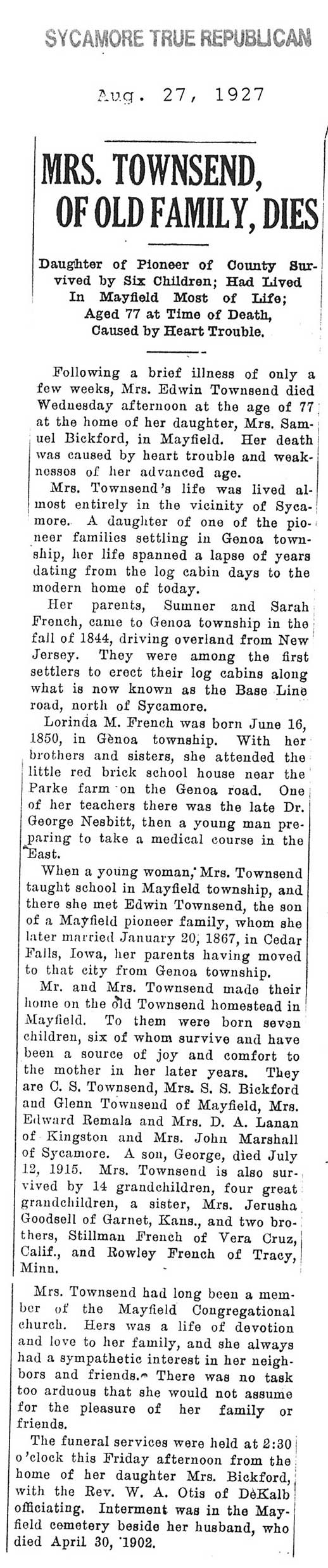 Buried in Wyoming Cemetery - Paw Paw, IL