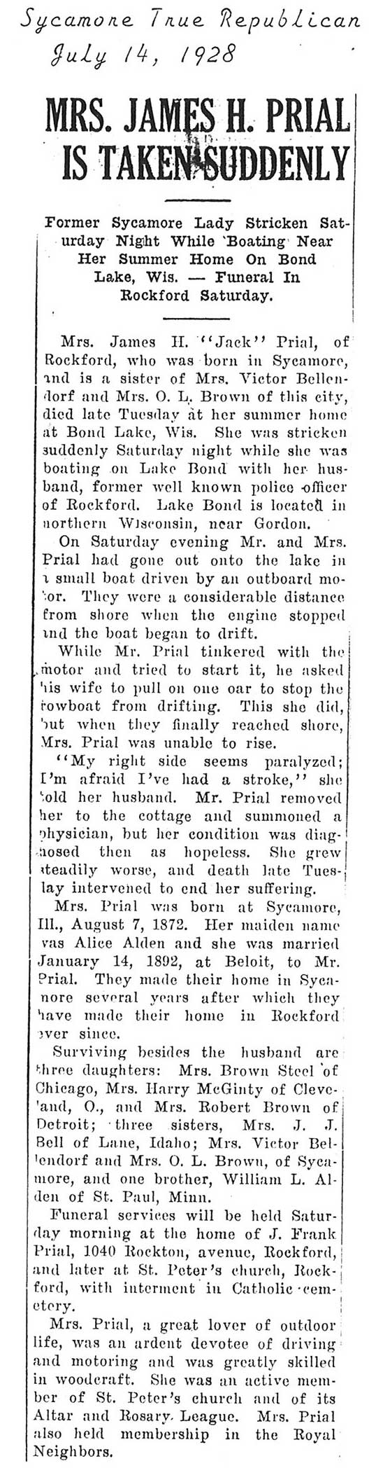 Buried in Spring Lake Cemetery - Aurora, IL
