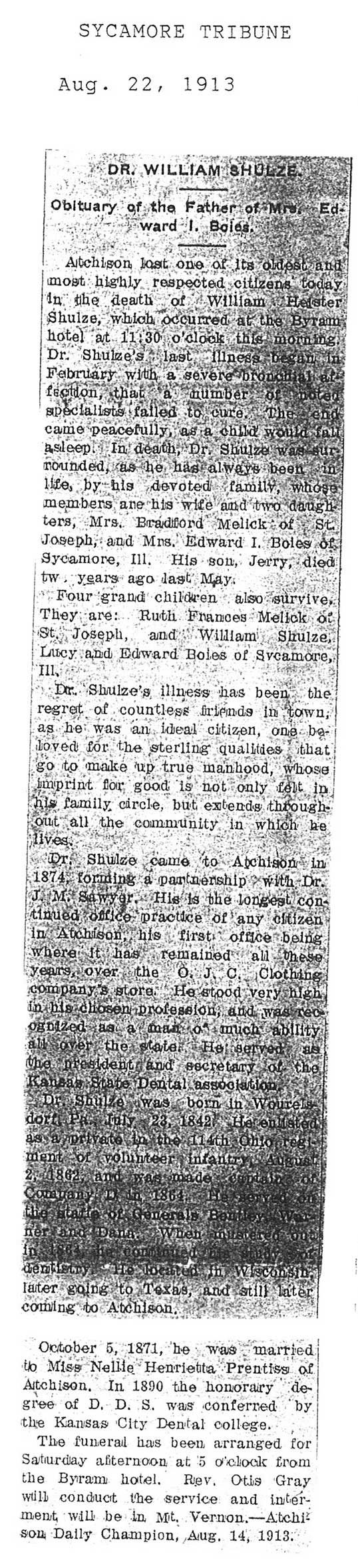 Buried in Mount Vernon Cemetery - Atchison, KS