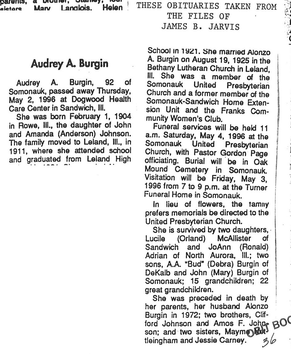 No date of birth Buried in Freeland Cemetery