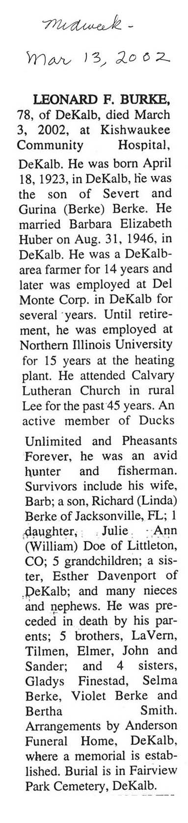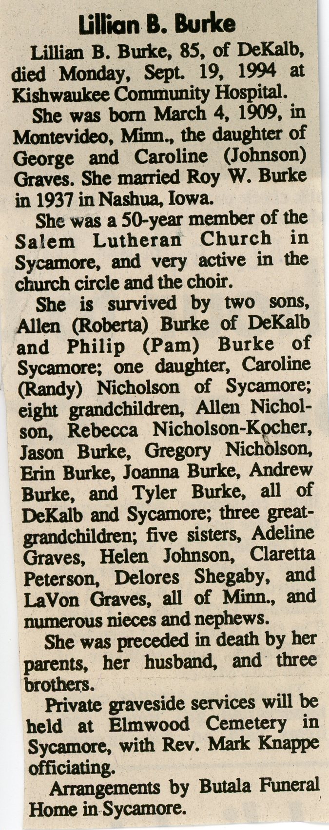 Buried in Scandanavian Cemetery - Rockford, IL