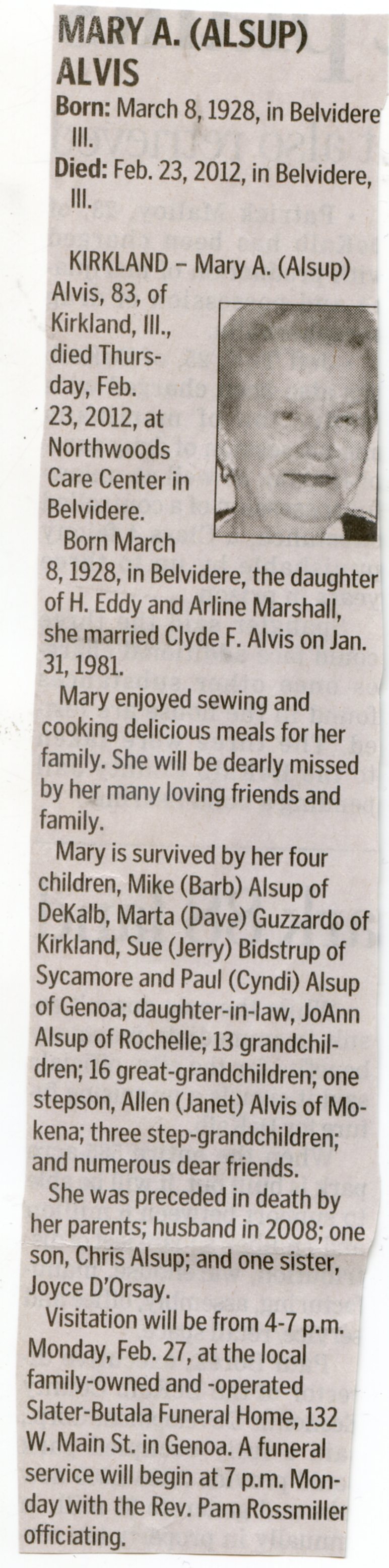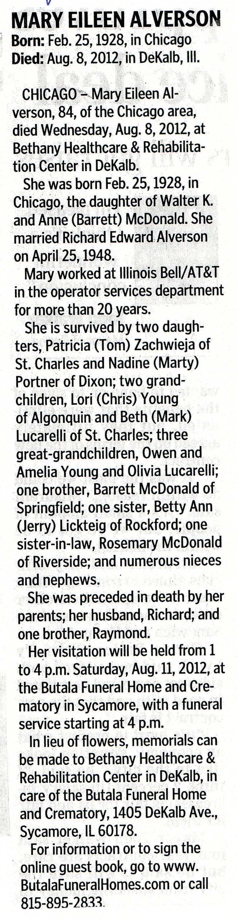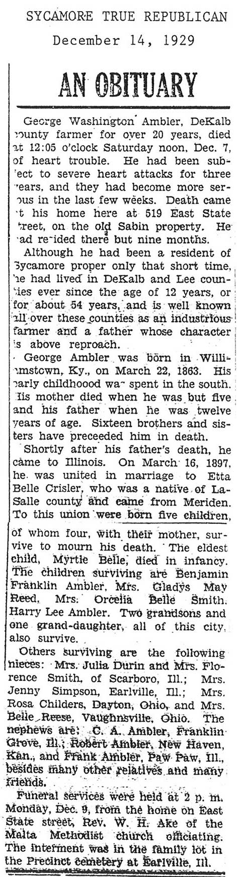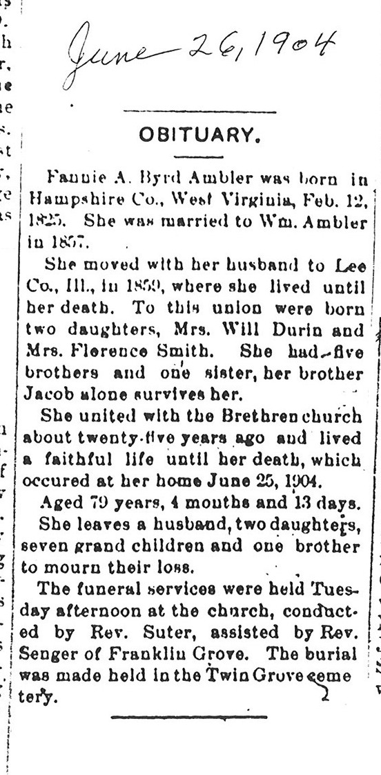 Buried in Precinct Cemetery - Earlville, IL
