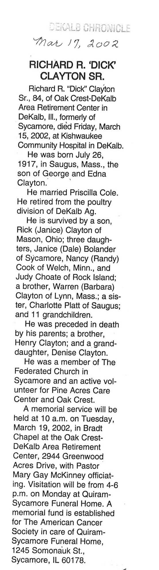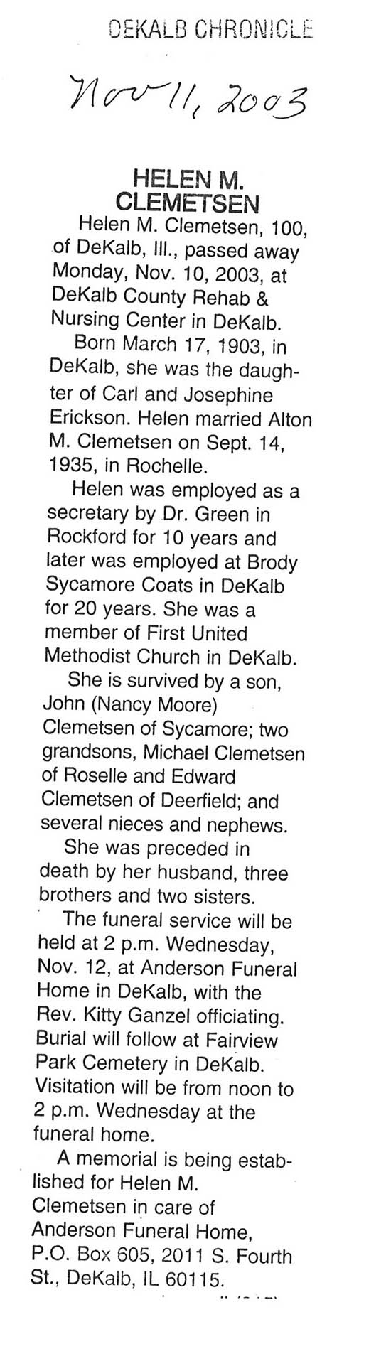 Buried in Mt. Hope Cemetery, IL