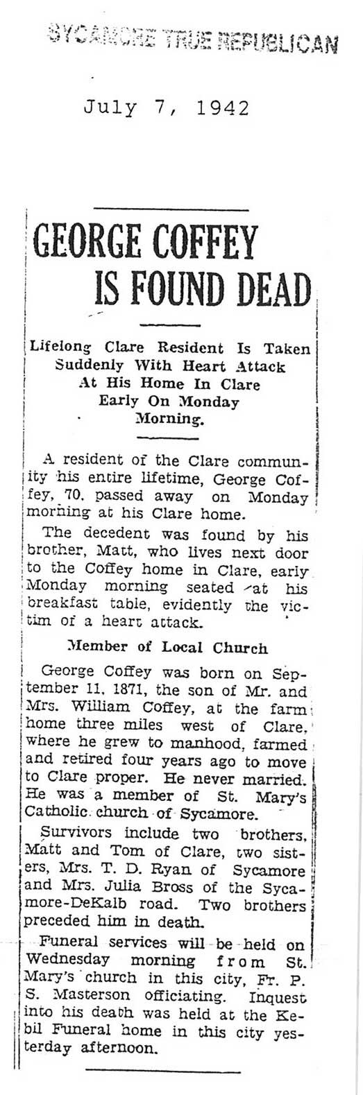 Buried in Catholic Cemetery - Dixon, IL