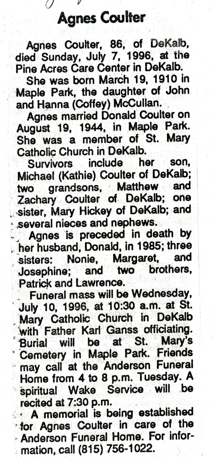 His date of death is not listed in this obit.