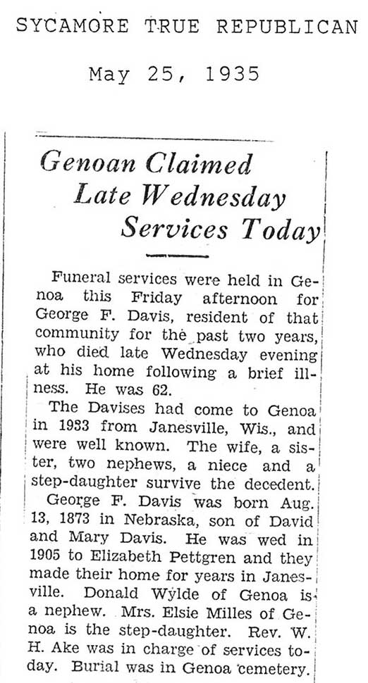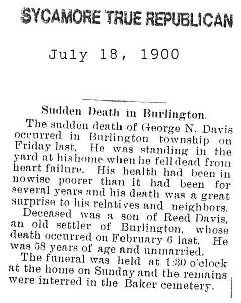 No date of birth Buried in Baker Cemetery - Plato Twp, IL
