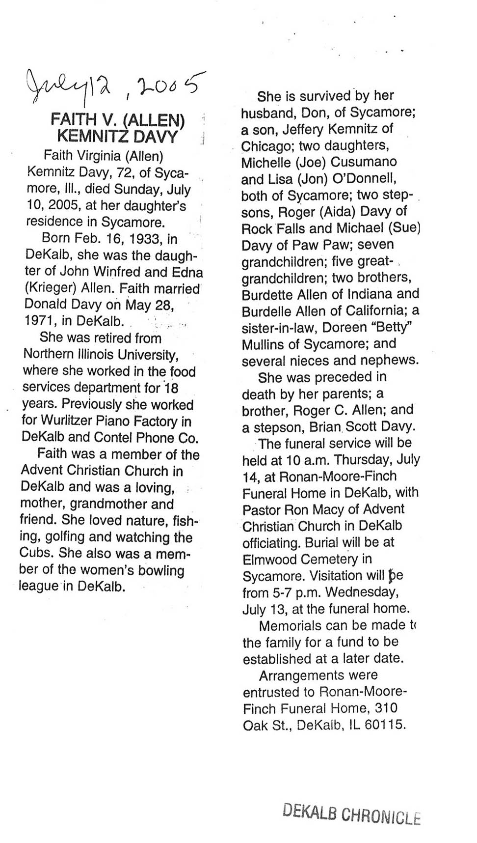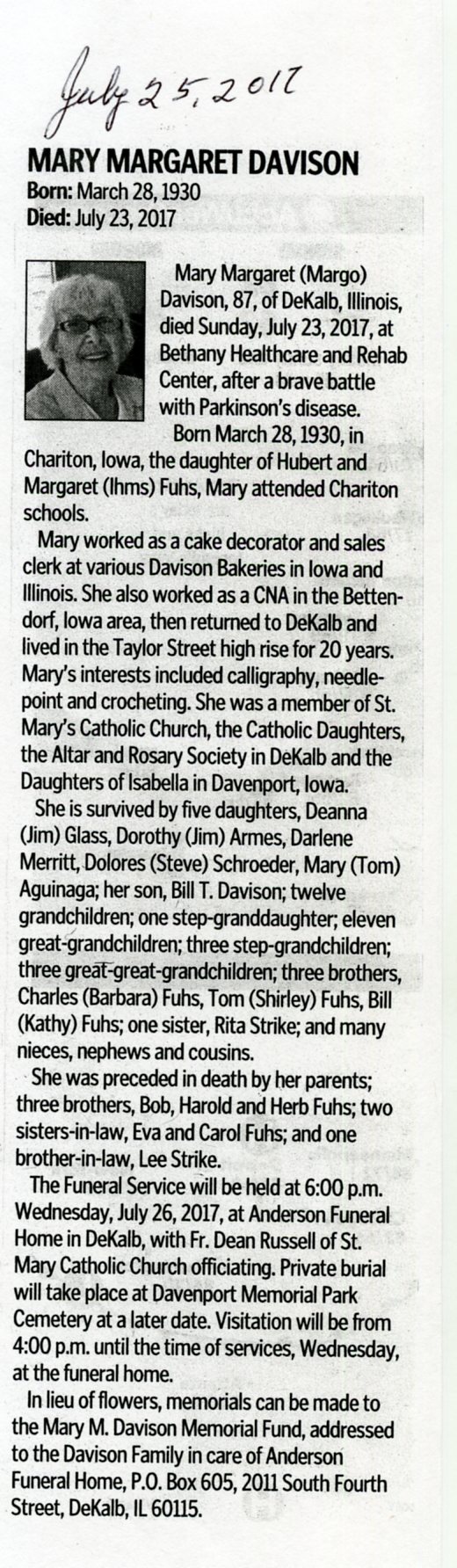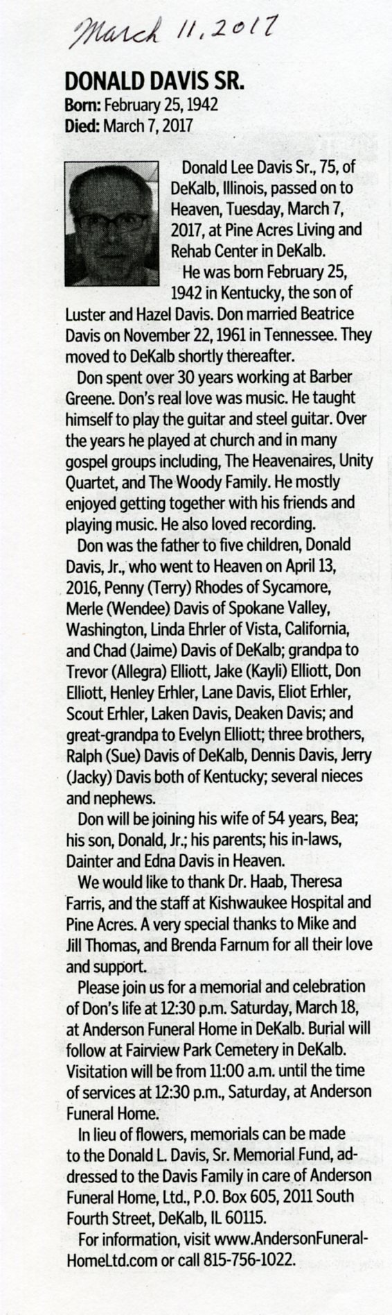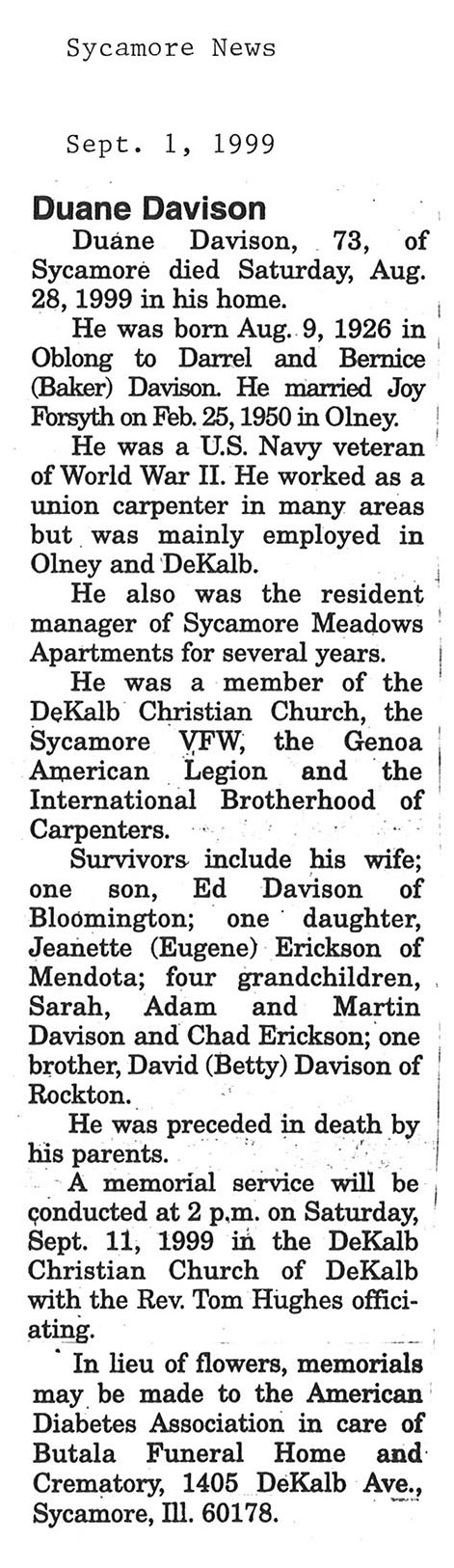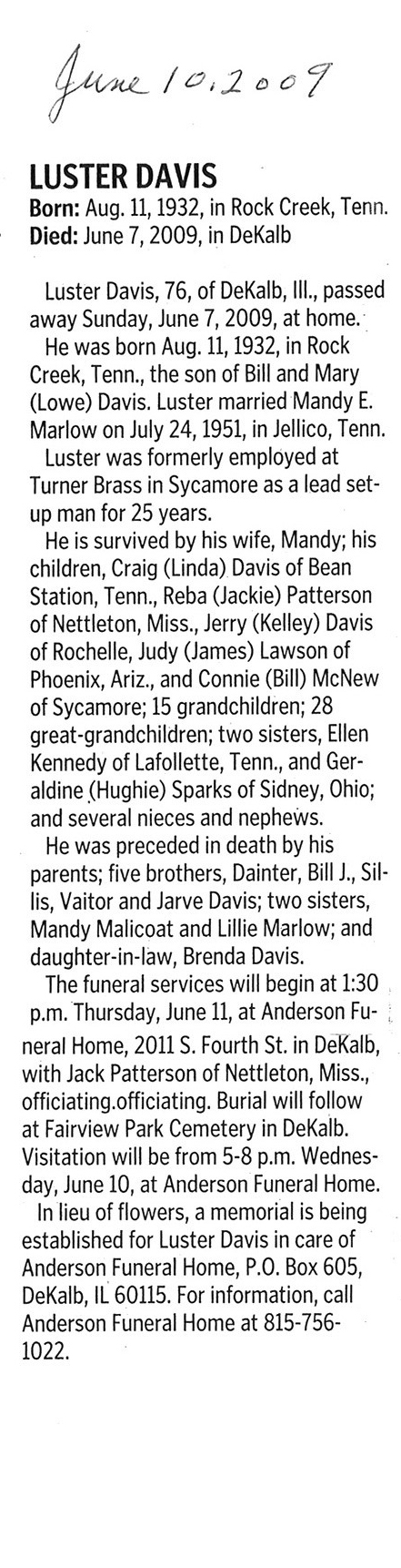 Buried in Spring Lake Cemetery - Aurora, IL
