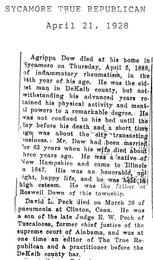 No date of birtth Buried in Ellsworth Cemetery - Paw Paw, IL